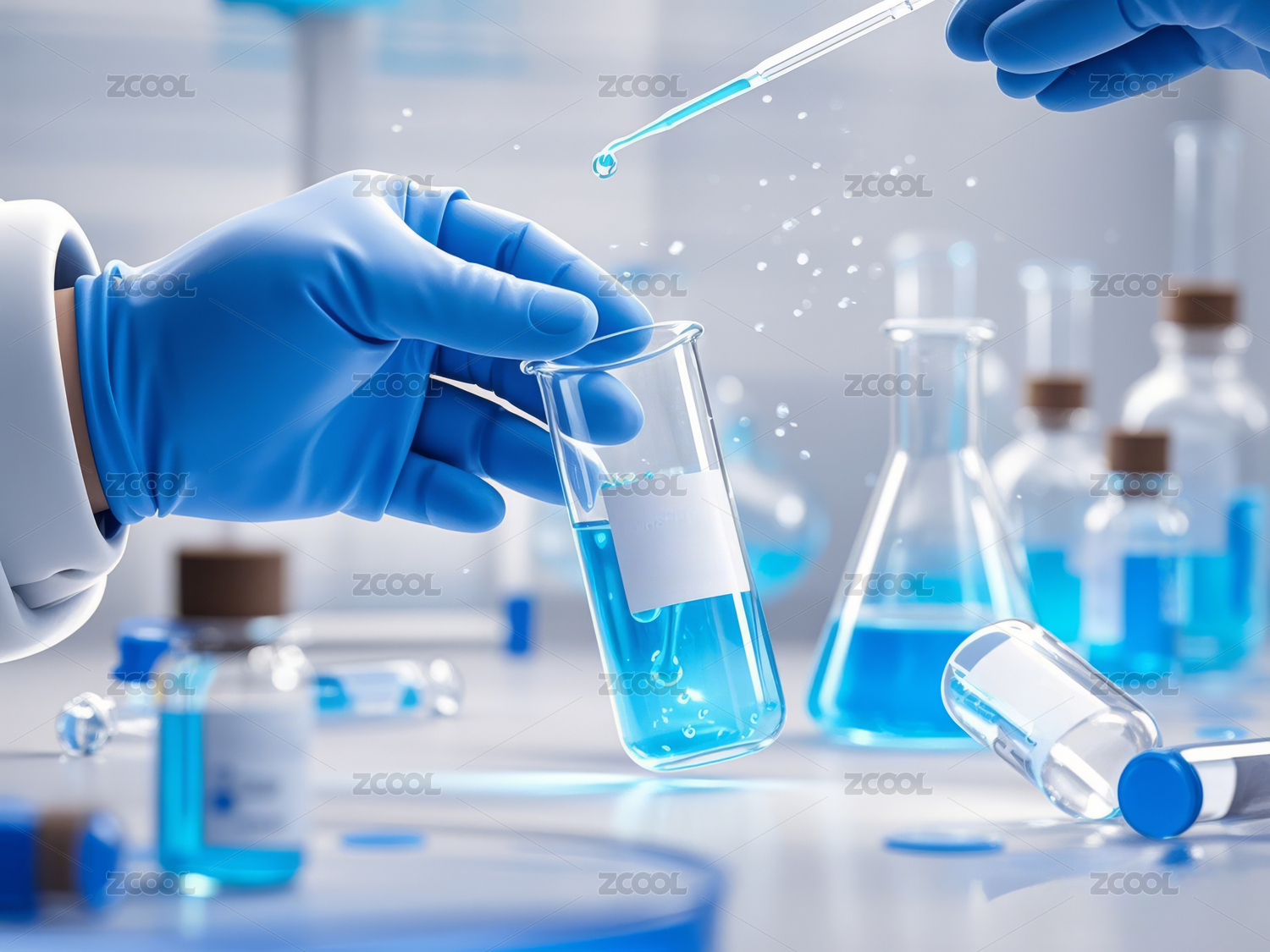 实验室里的蓝色液体实验