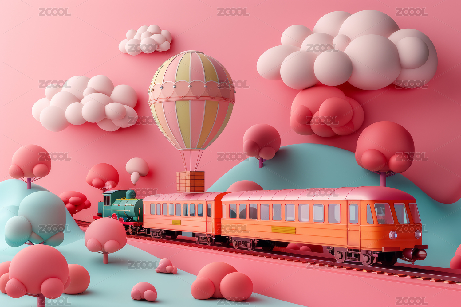 AIGC202404,电车,复古,出行,旅行,旅游,插画