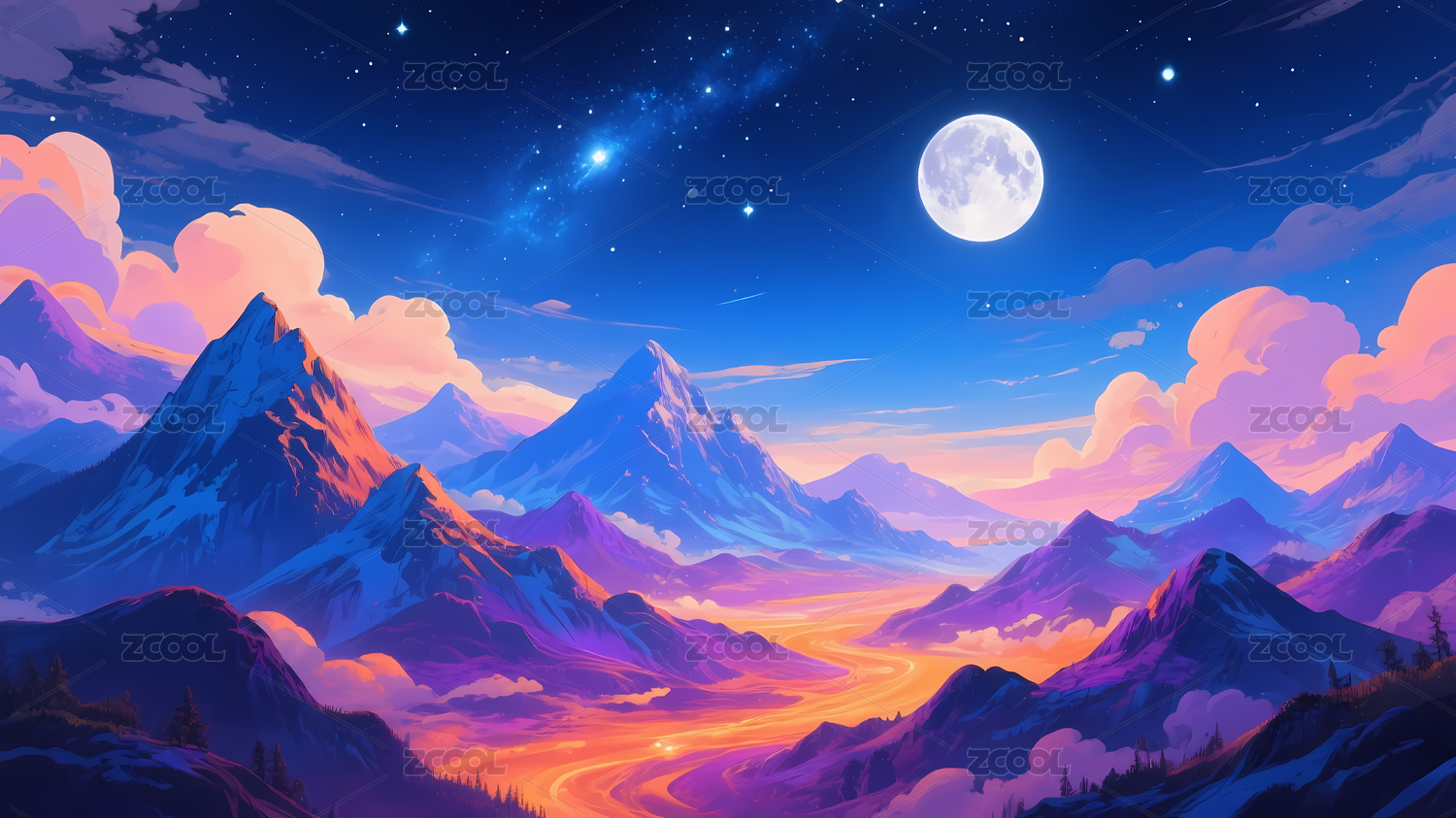 彩色,时尚,抽象,艺术,梦幻,炫光,背景,3d,山,植物