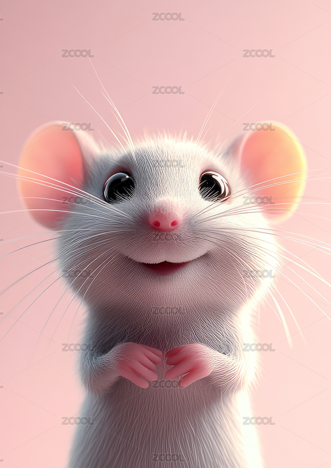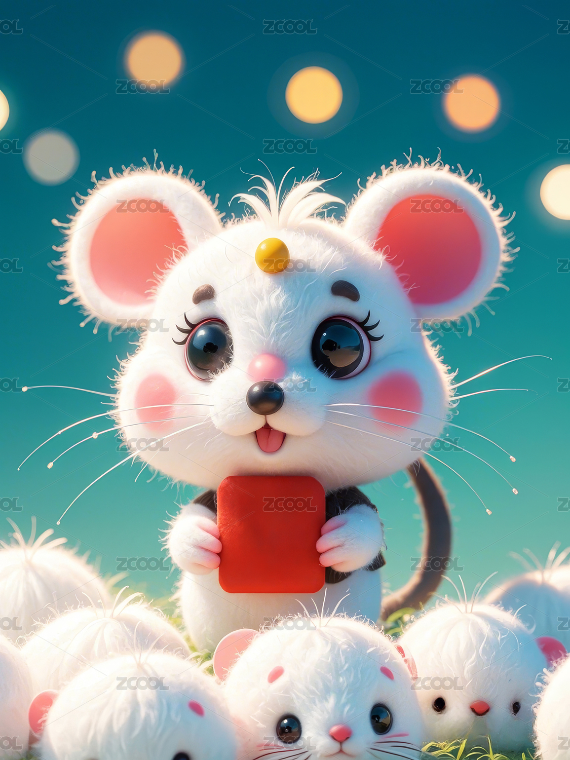 可爱卡通鼠年动物形象的吉祥物3D插画