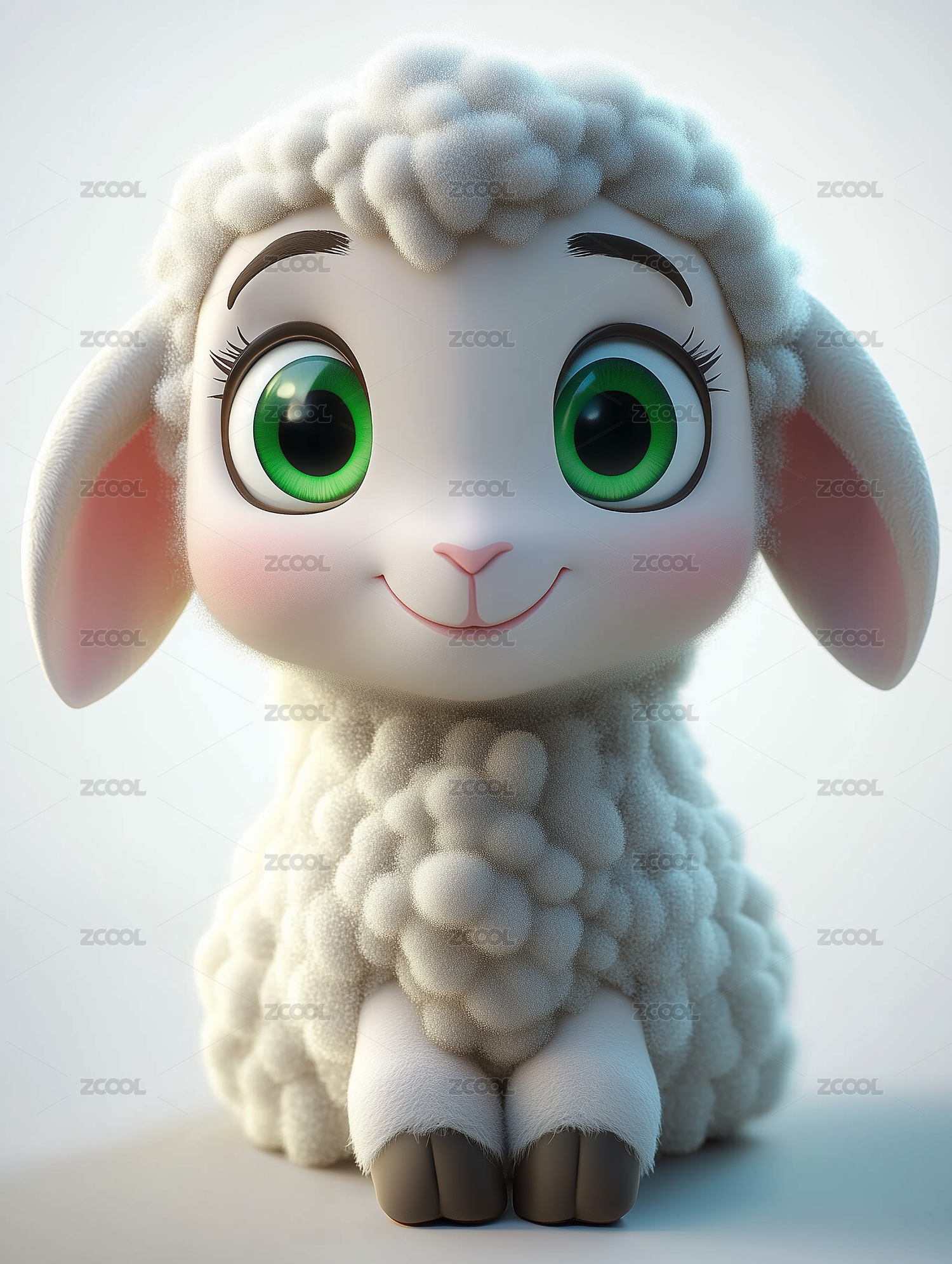 一只小白羊脸上挂着灿烂的笑容高清图片