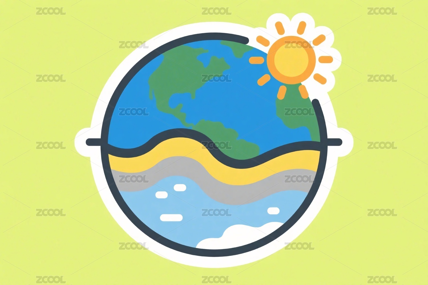 Q版线条儿童插画绿色的地球上有海洋植物和