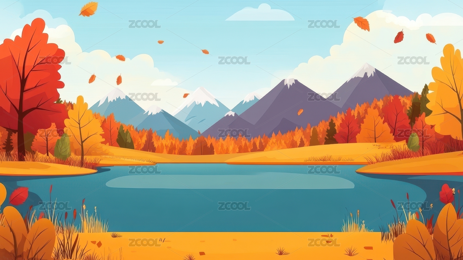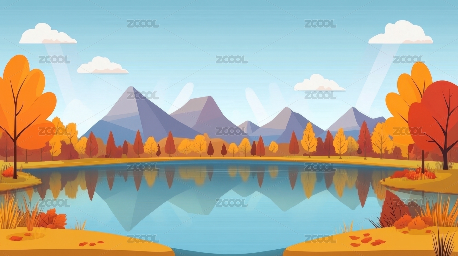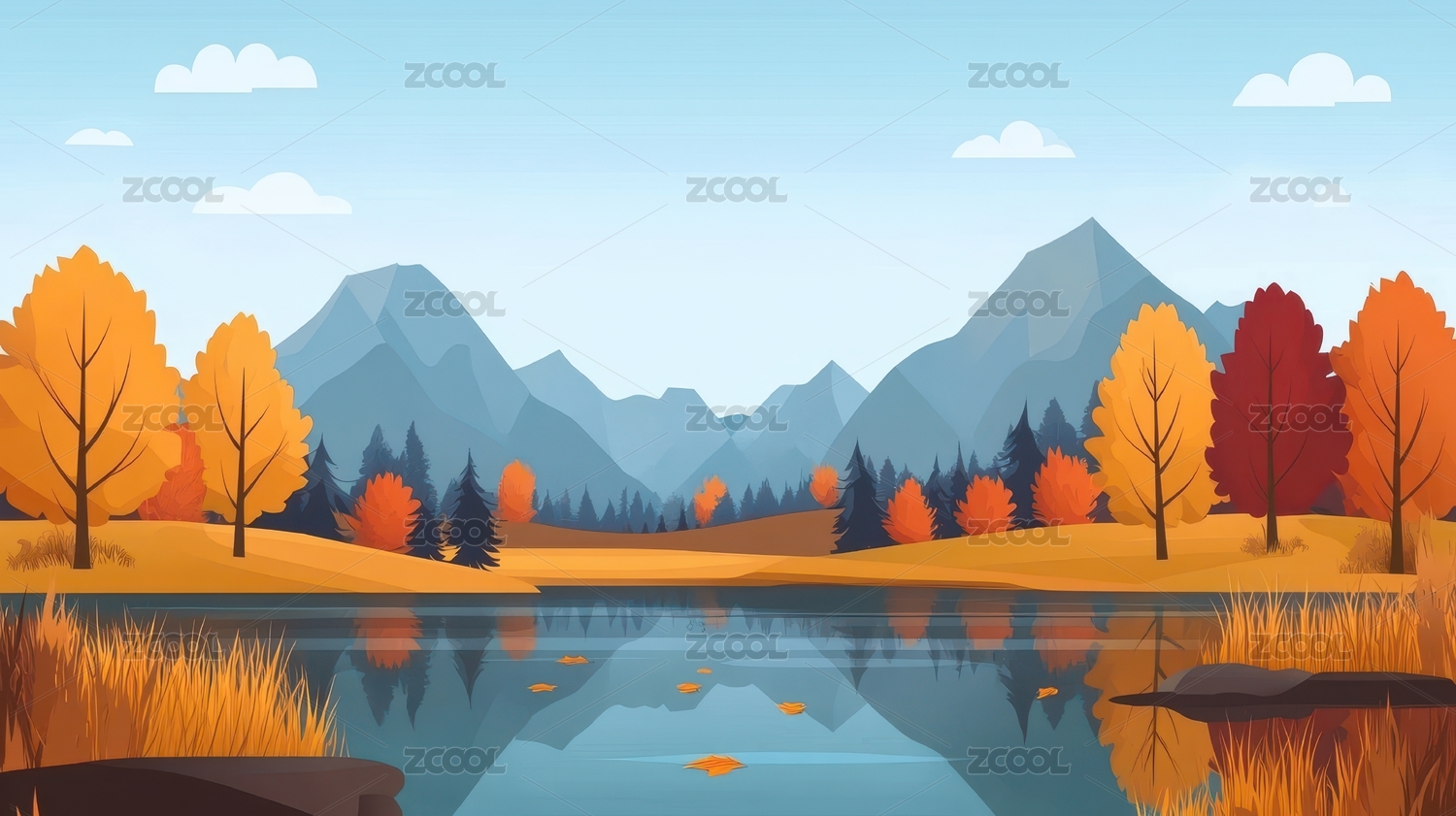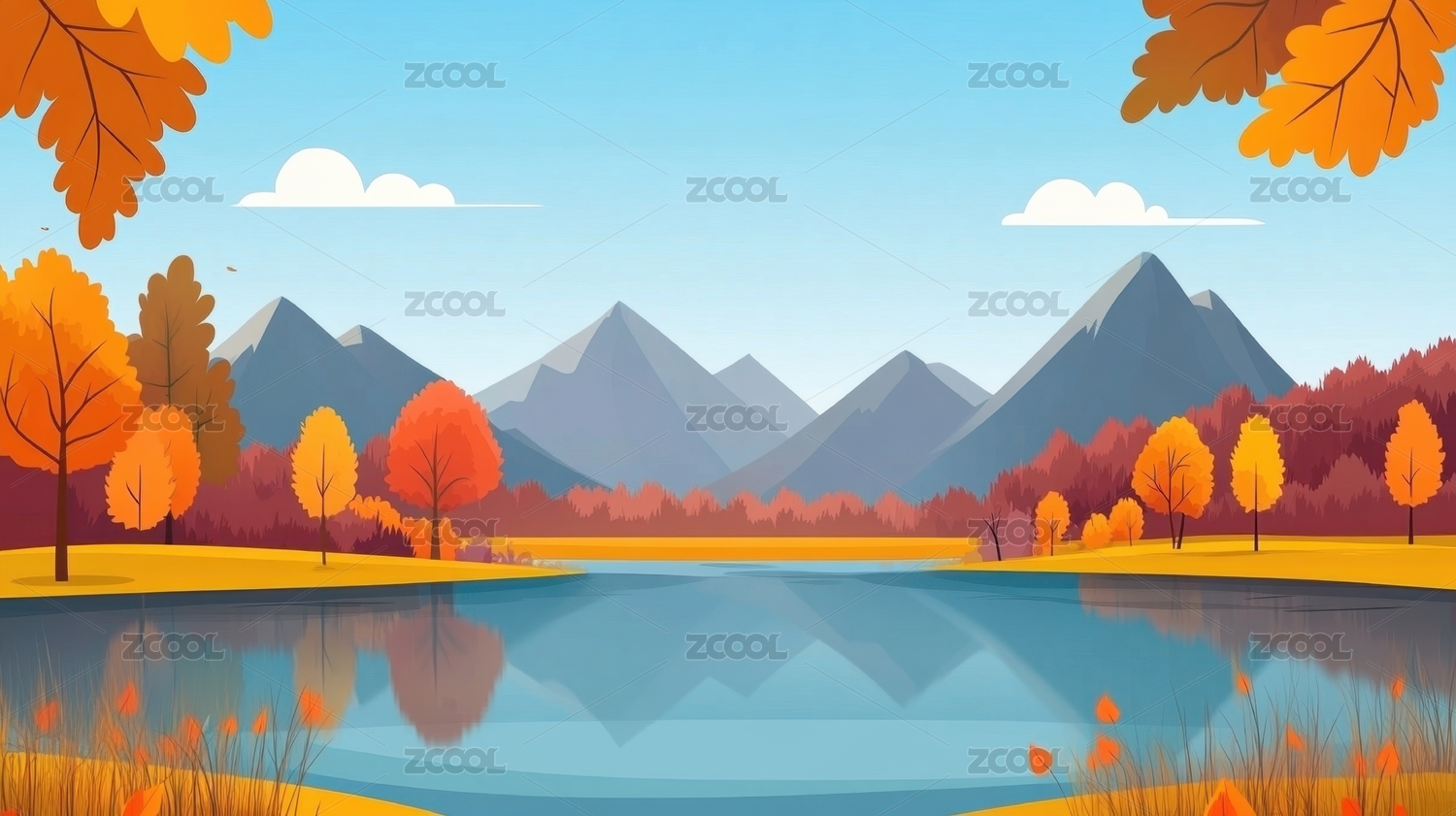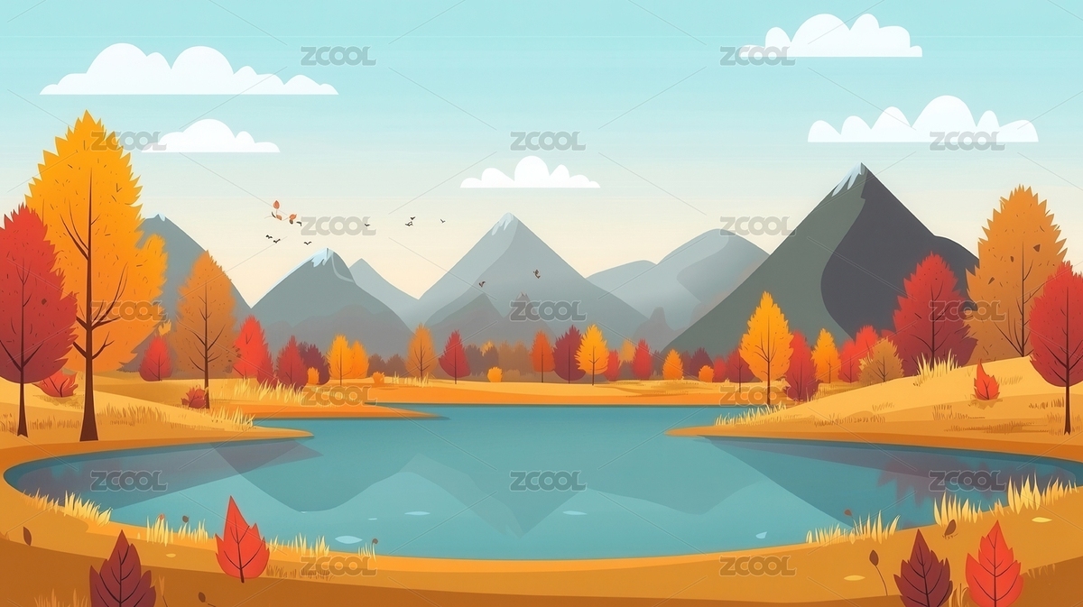 秋日湖畔宁静山景