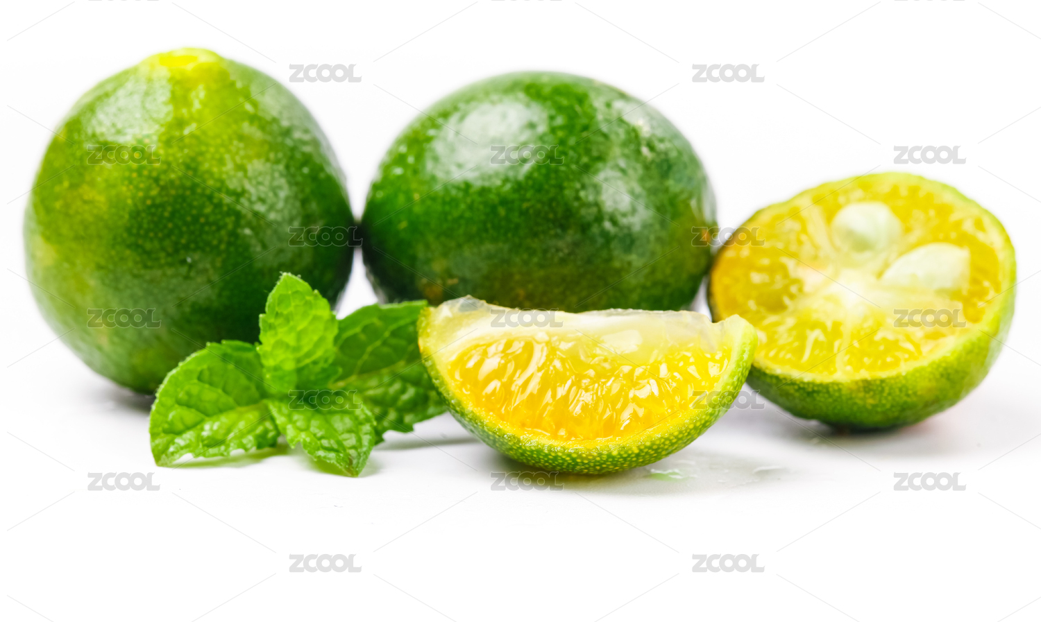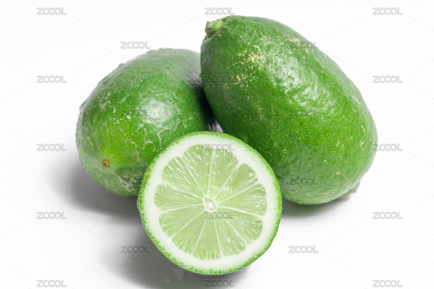 白底上放着一堆新鲜青柠檬和青柠檬果肉