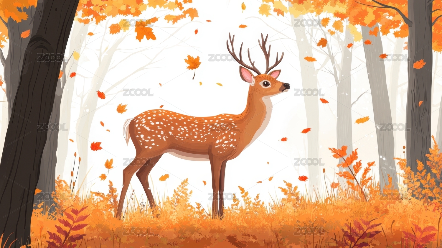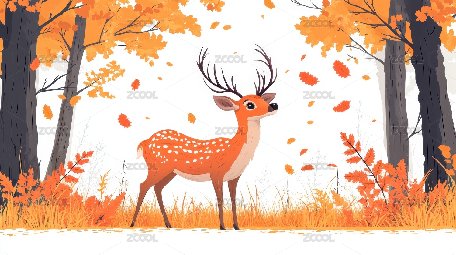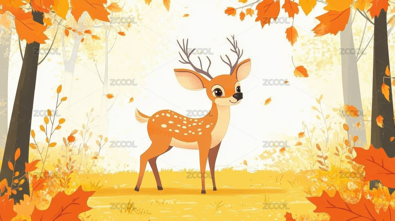 秋天立秋秋分动物宠物萌宠卡通漫画插画