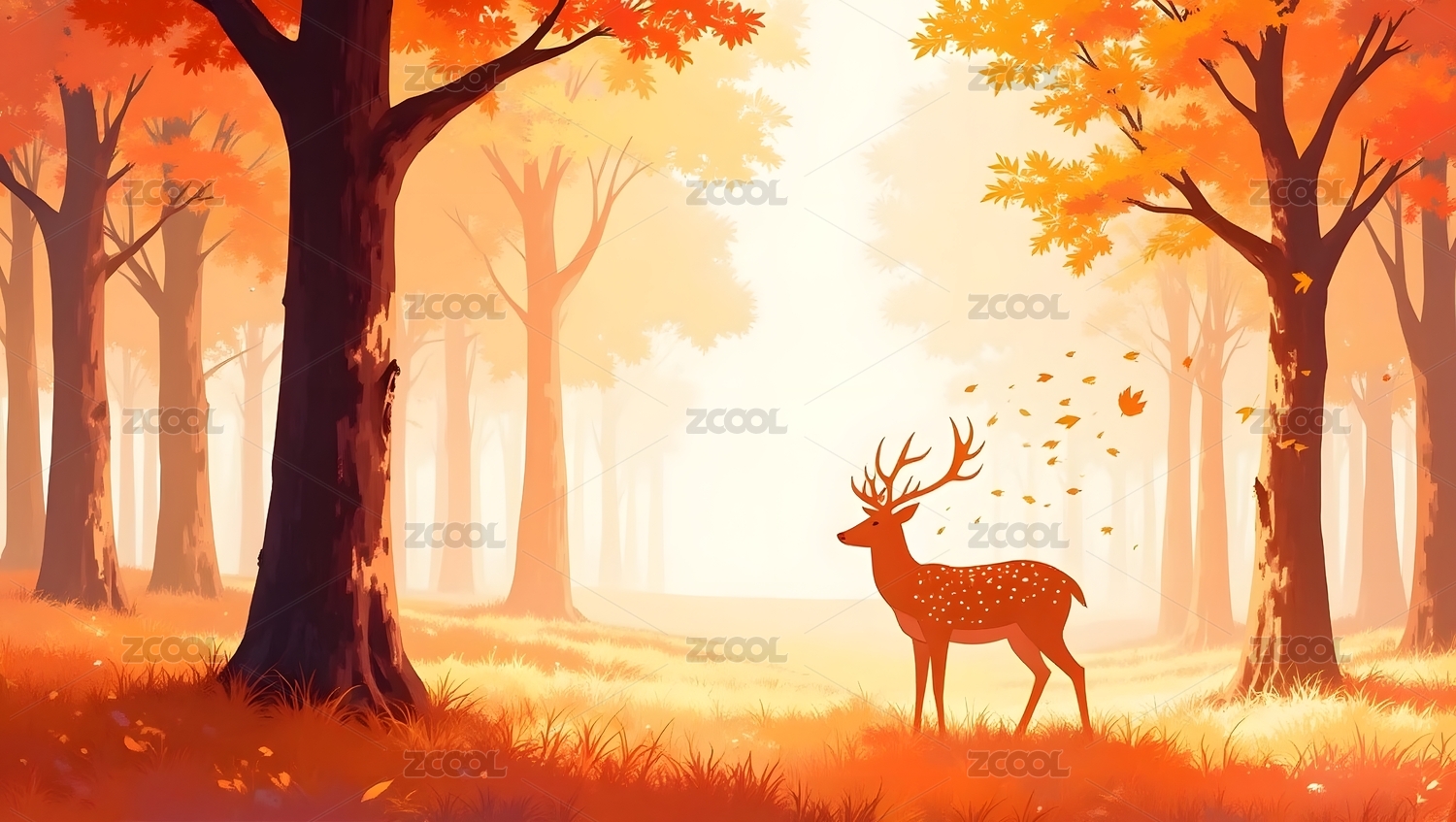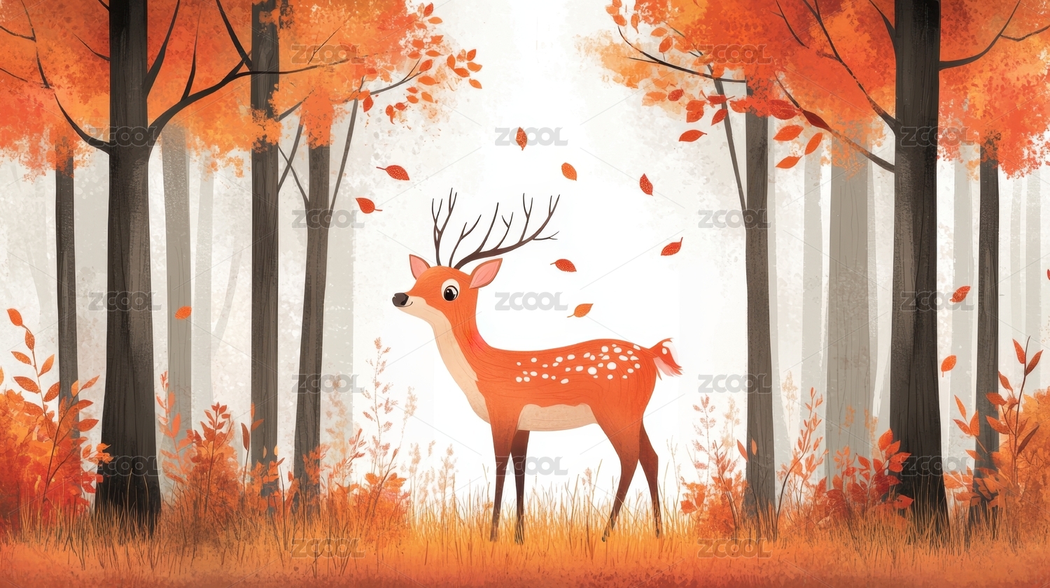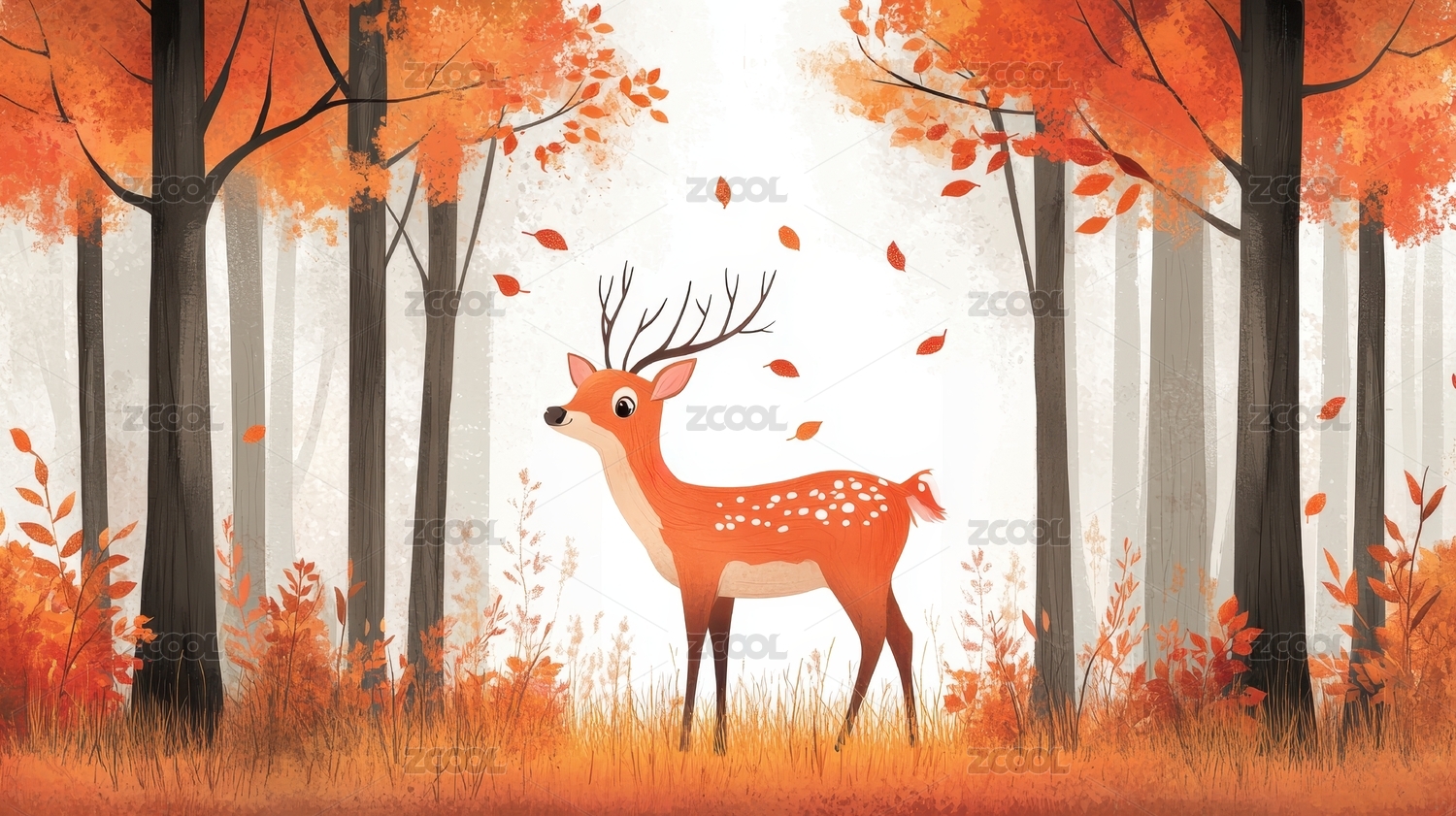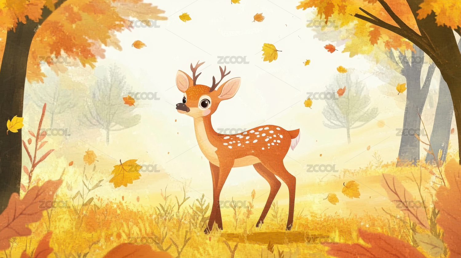 秋天立秋秋分动物宠物萌宠卡通漫画插画