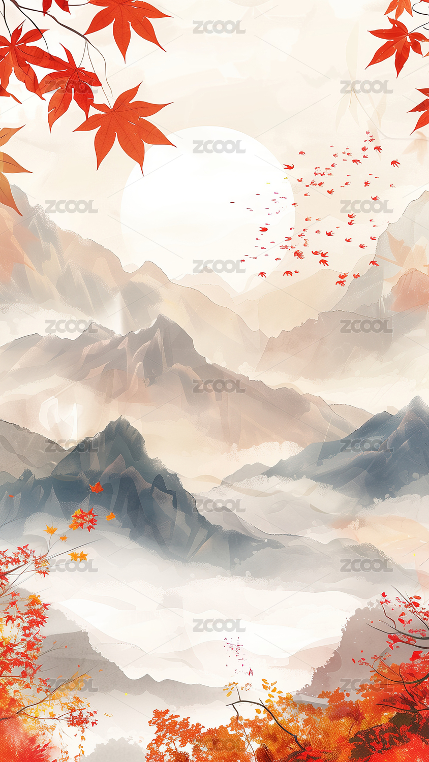 中国风秋天的风景插画