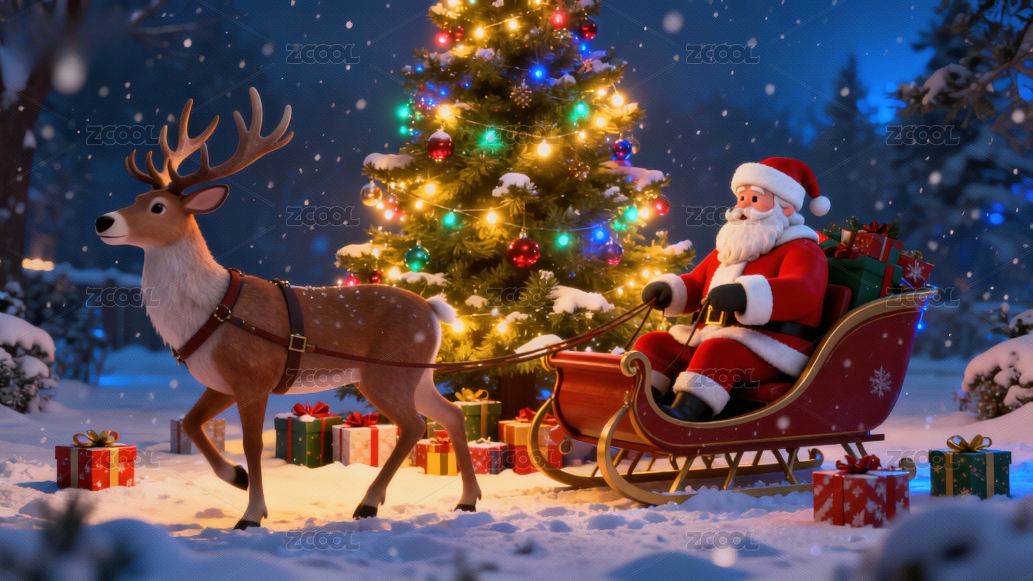 圣诞老人雪橇与驯鹿夜行