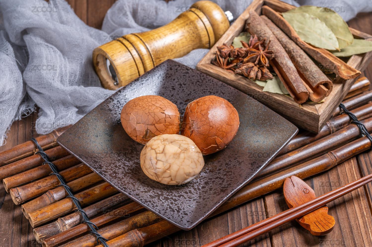 木纹桌上的茶叶蛋