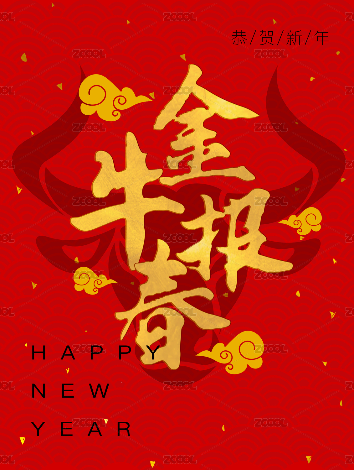 金牛贺春矢量书法字