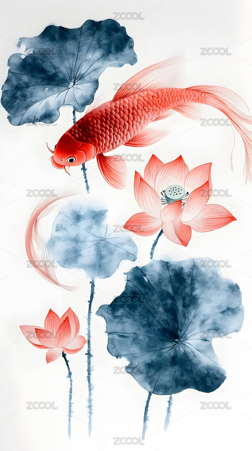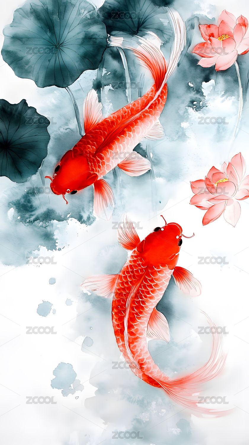 水彩画,绘画,艺术,自然,水墨画,写意画,中国画,中国风,传统,鱼