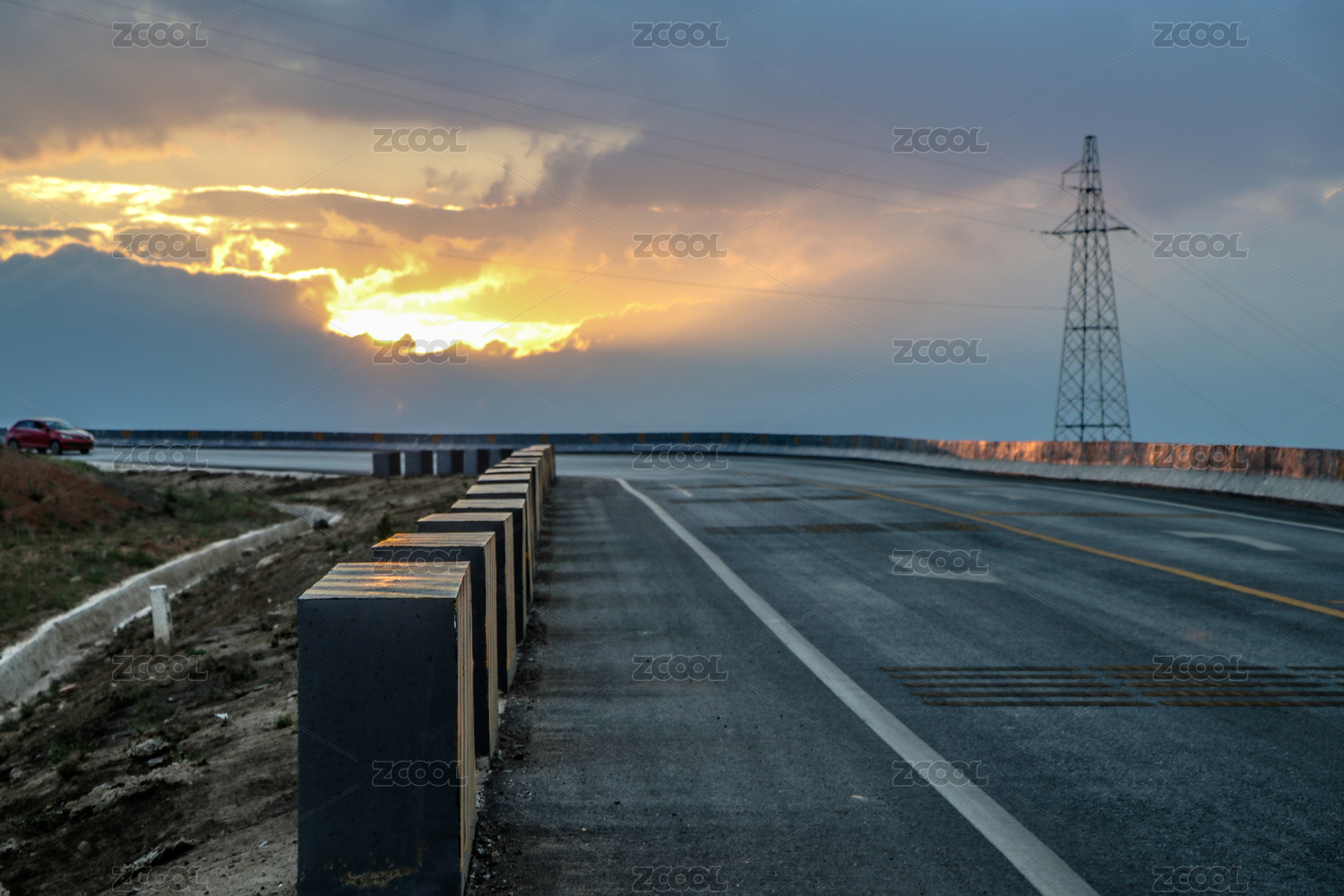 内蒙额济纳齐八道桥傍晚夕阳下的公路风光