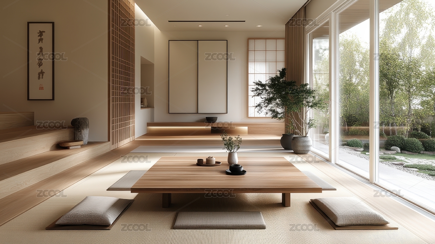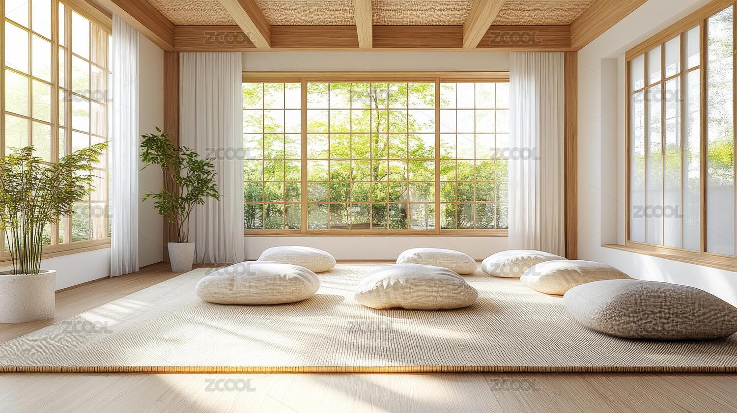 室内设计,地毯,家居,盆栽,简约,日式风格,禅意,榻榻米,落地窗,自然