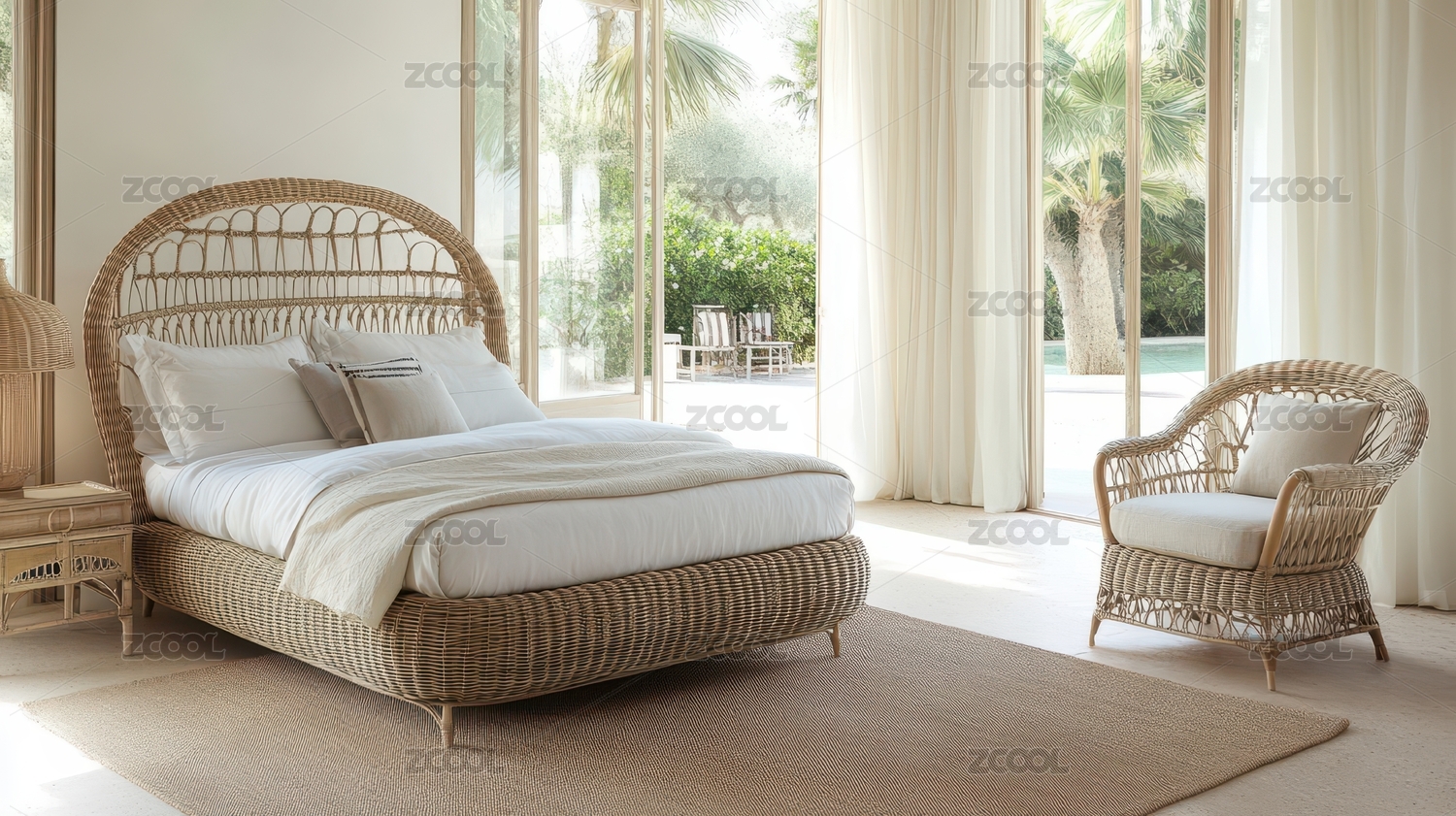卧室,舒适,藤编,床,室内设计,简约,自然,温馨,休闲,自然光