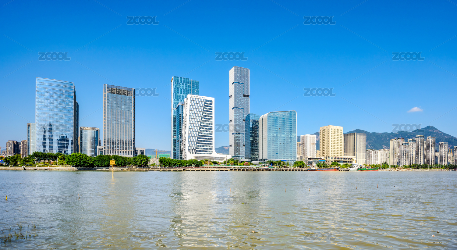 晴空下的中国福建福州台江金融商务区高楼建筑景观