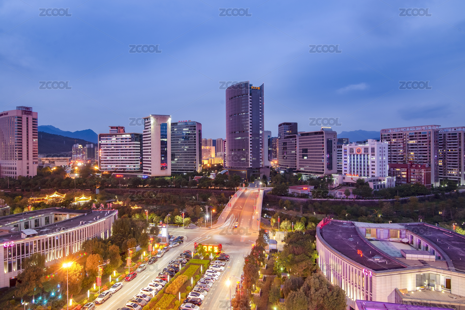 傍晚,华林路,商业区,城市,夜景,灯光,福州市,福州火车站,福建省,大厦