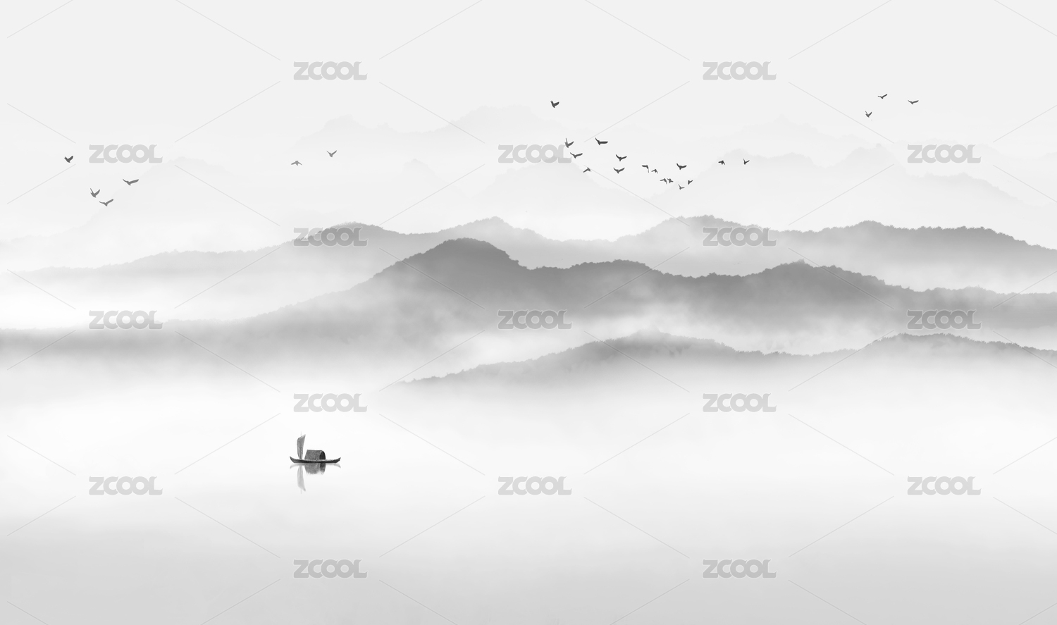 山水画,中国风,背景,意境,山水,留白,写意,层次,渔船,新中式