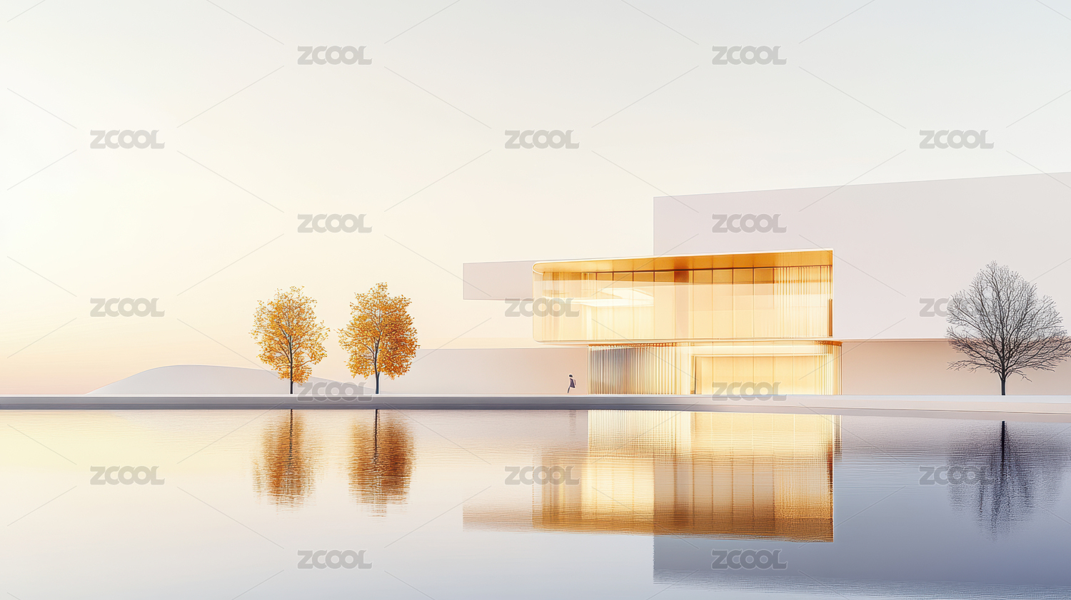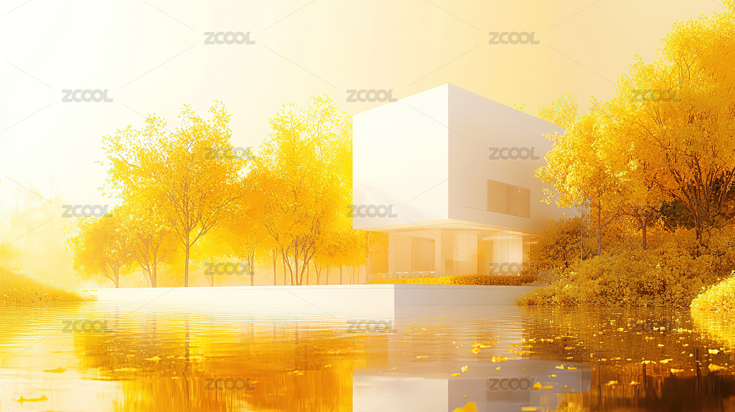 无人,风景,宁静,树,水,建筑,天空,云,秋天