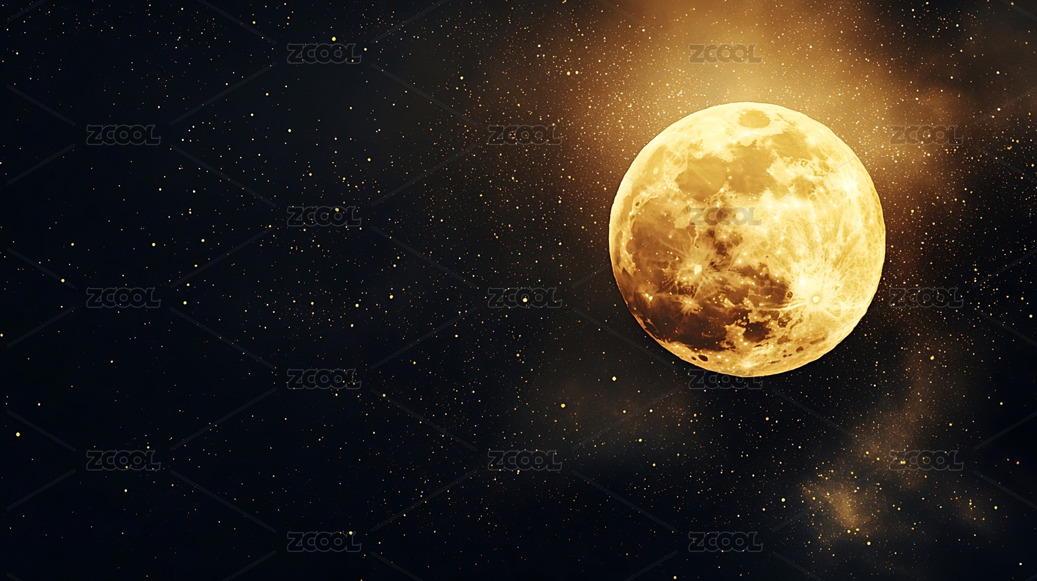 梦幻月亮背景唯美插图海上满月高清壁纸