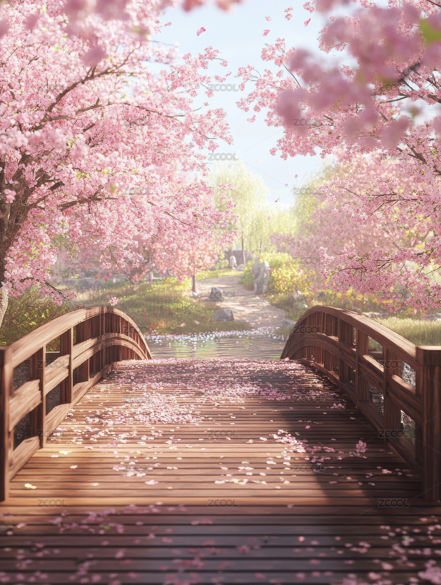 樱花桥上的落樱缤纷