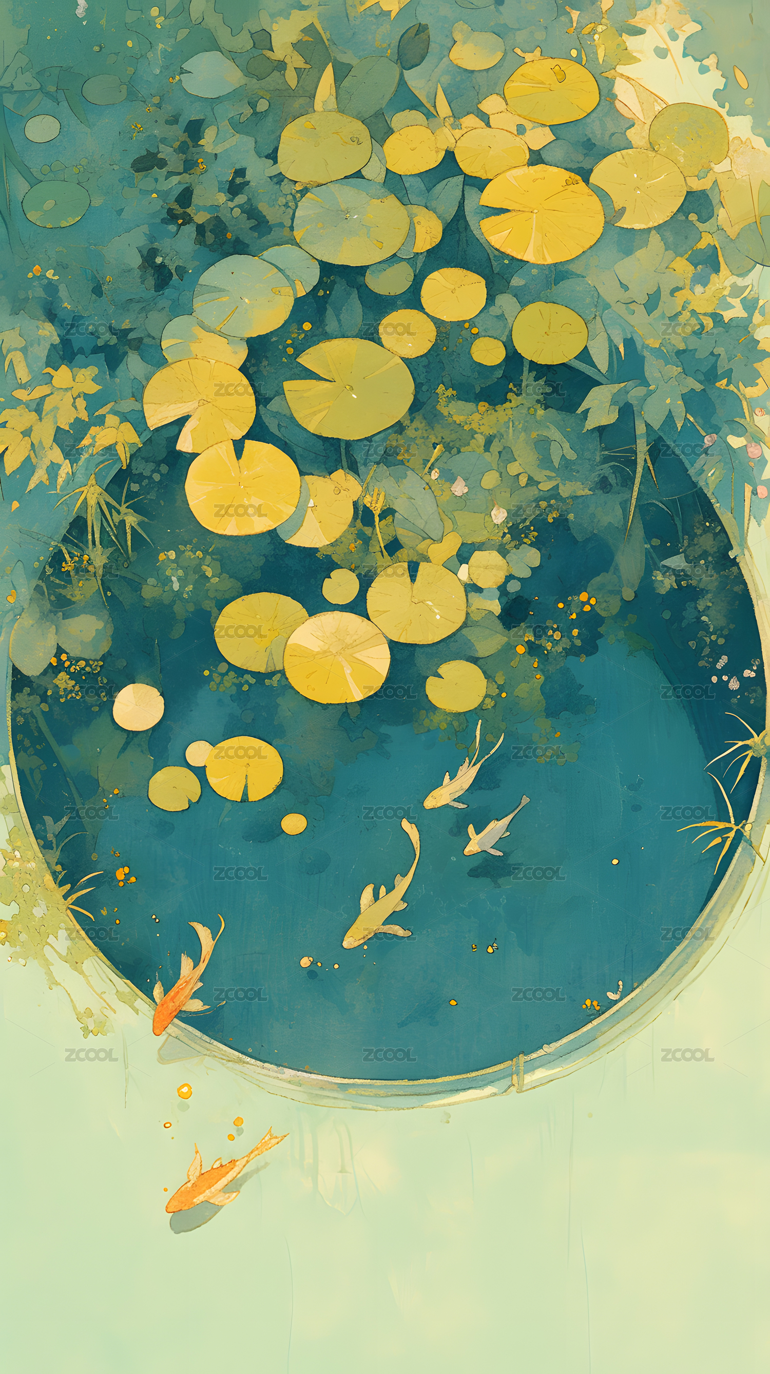 荷塘,鱼,锦鲤,卡通,插画,中国风