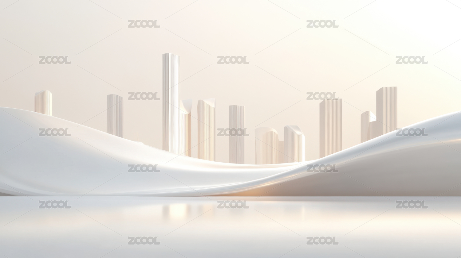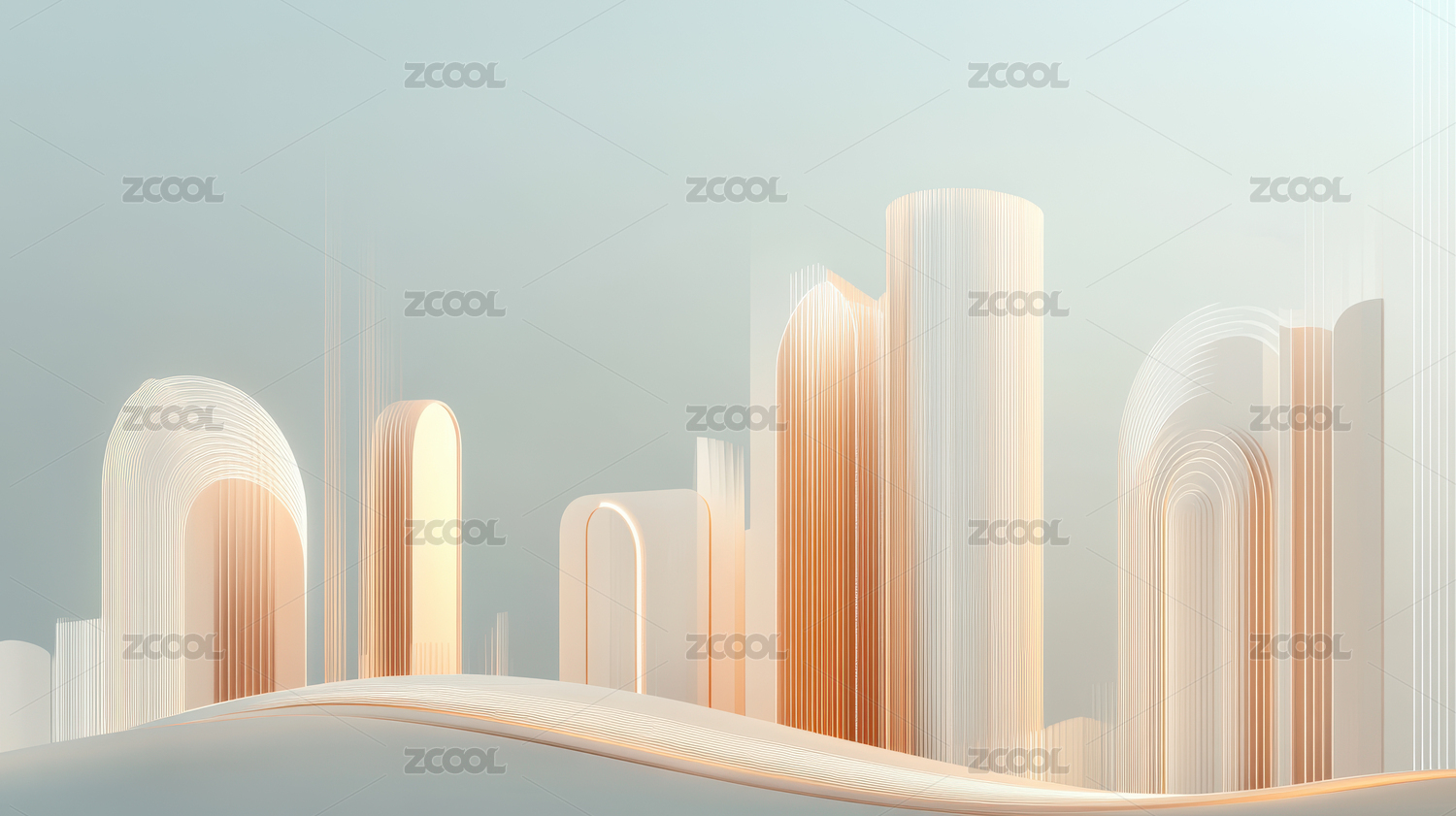 简约暖色背景波浪中的城市轮廓