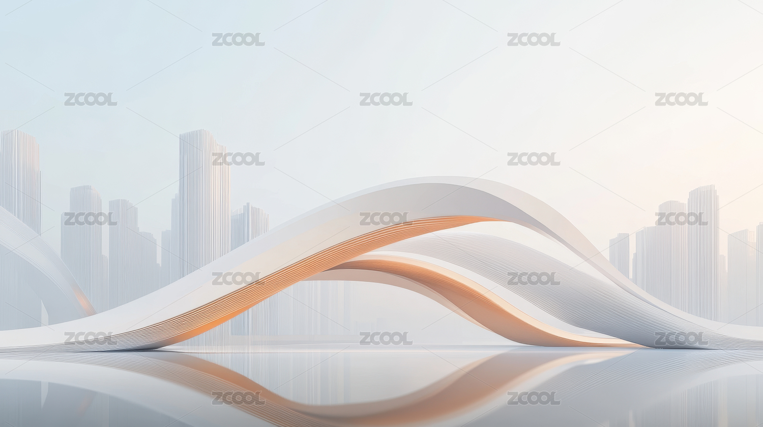 现代城市与波浪线条的抽象背景