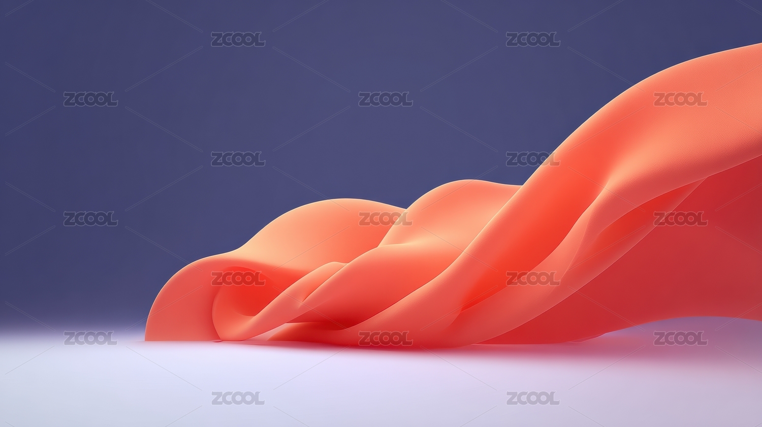 柔和的橙色布料在浅蓝色背景下的艺术展示