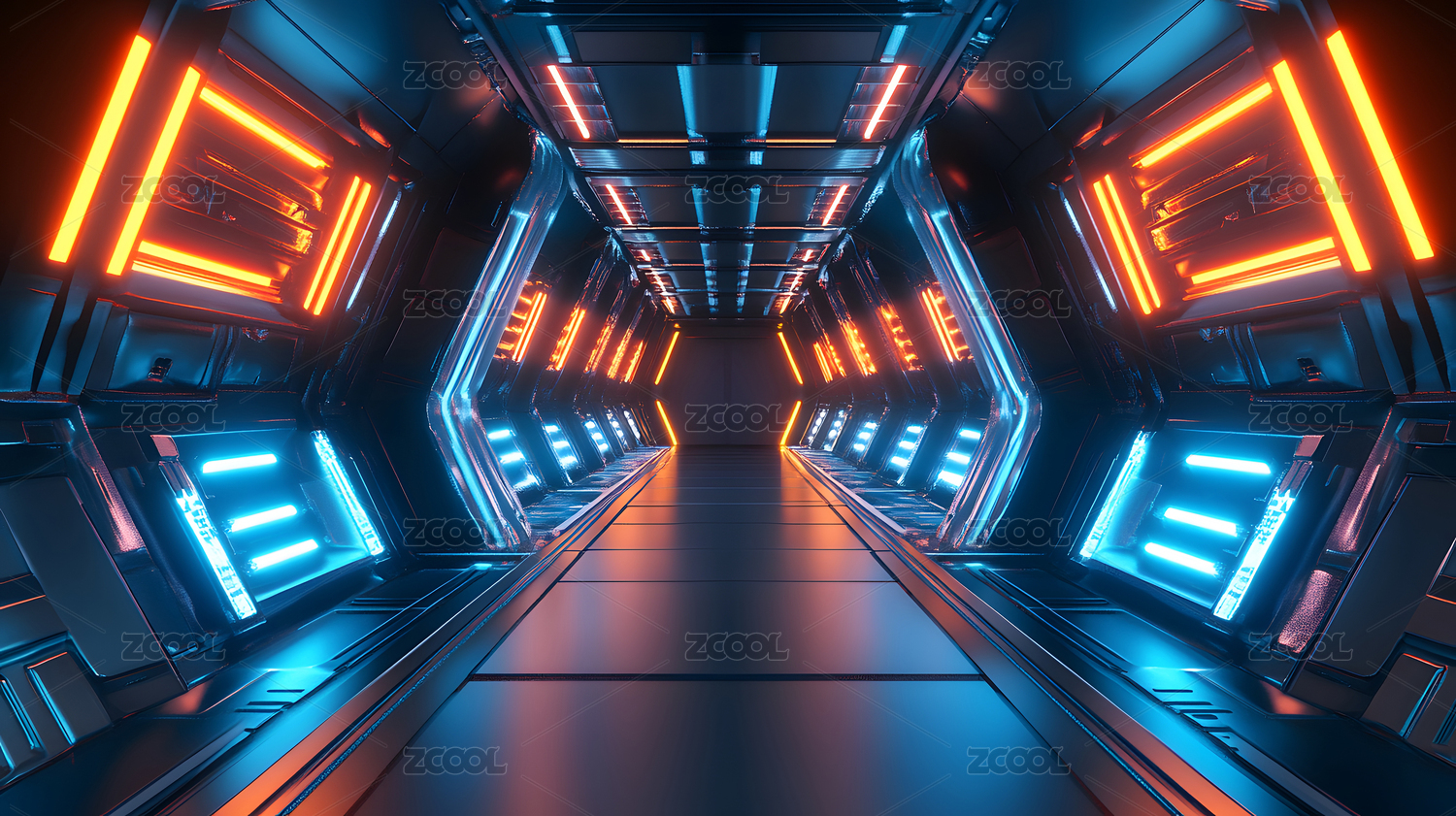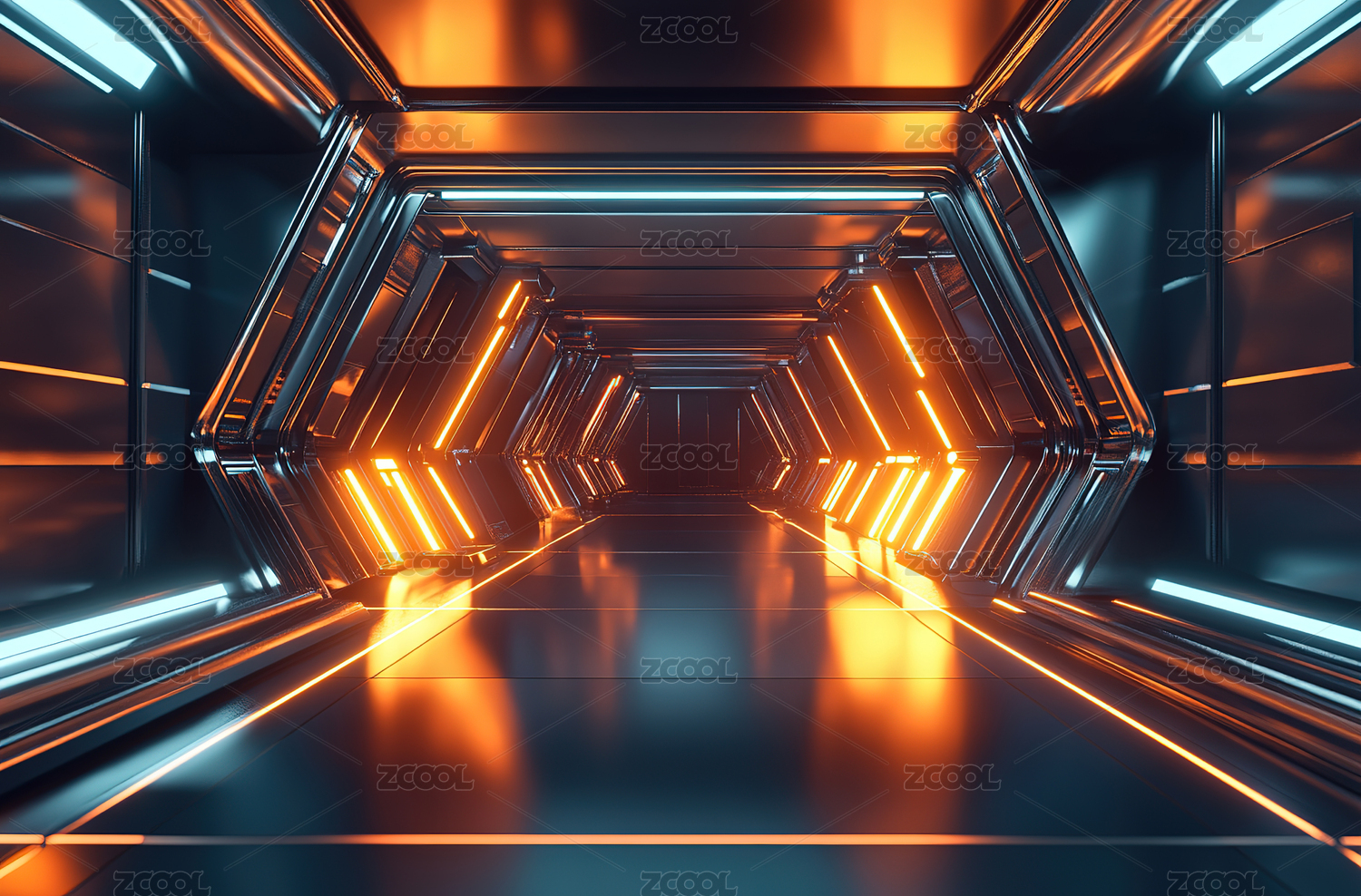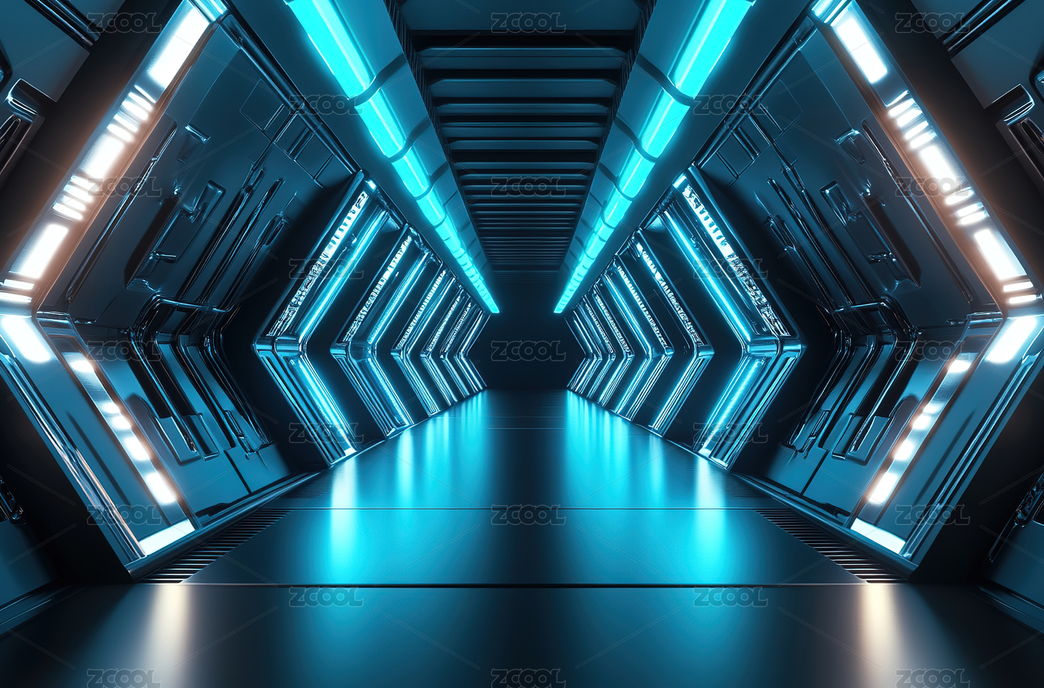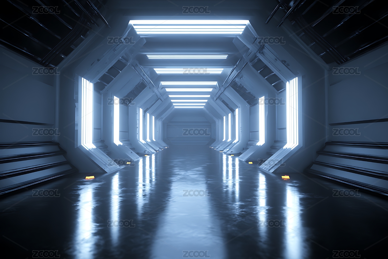未来, 反射, 金属, 设计, 科技, 现代, 光线, 空间, 建筑, 走廊