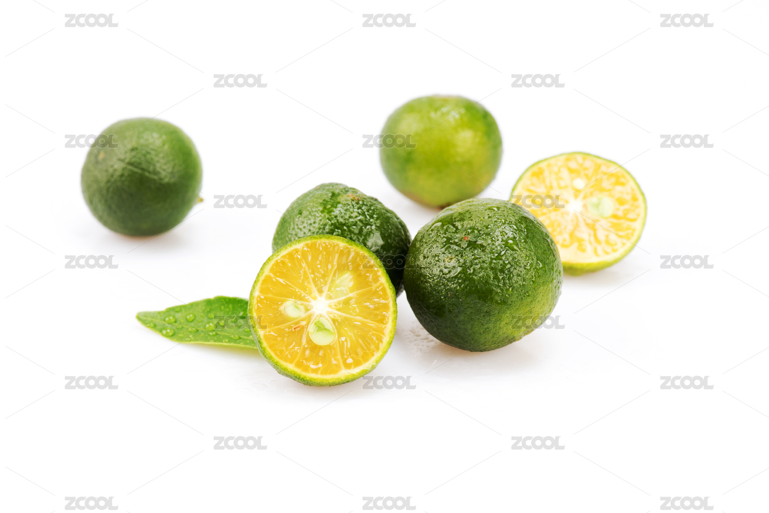 白底上放着一个黄皮清香蜜桔和一个青皮蜜橘
