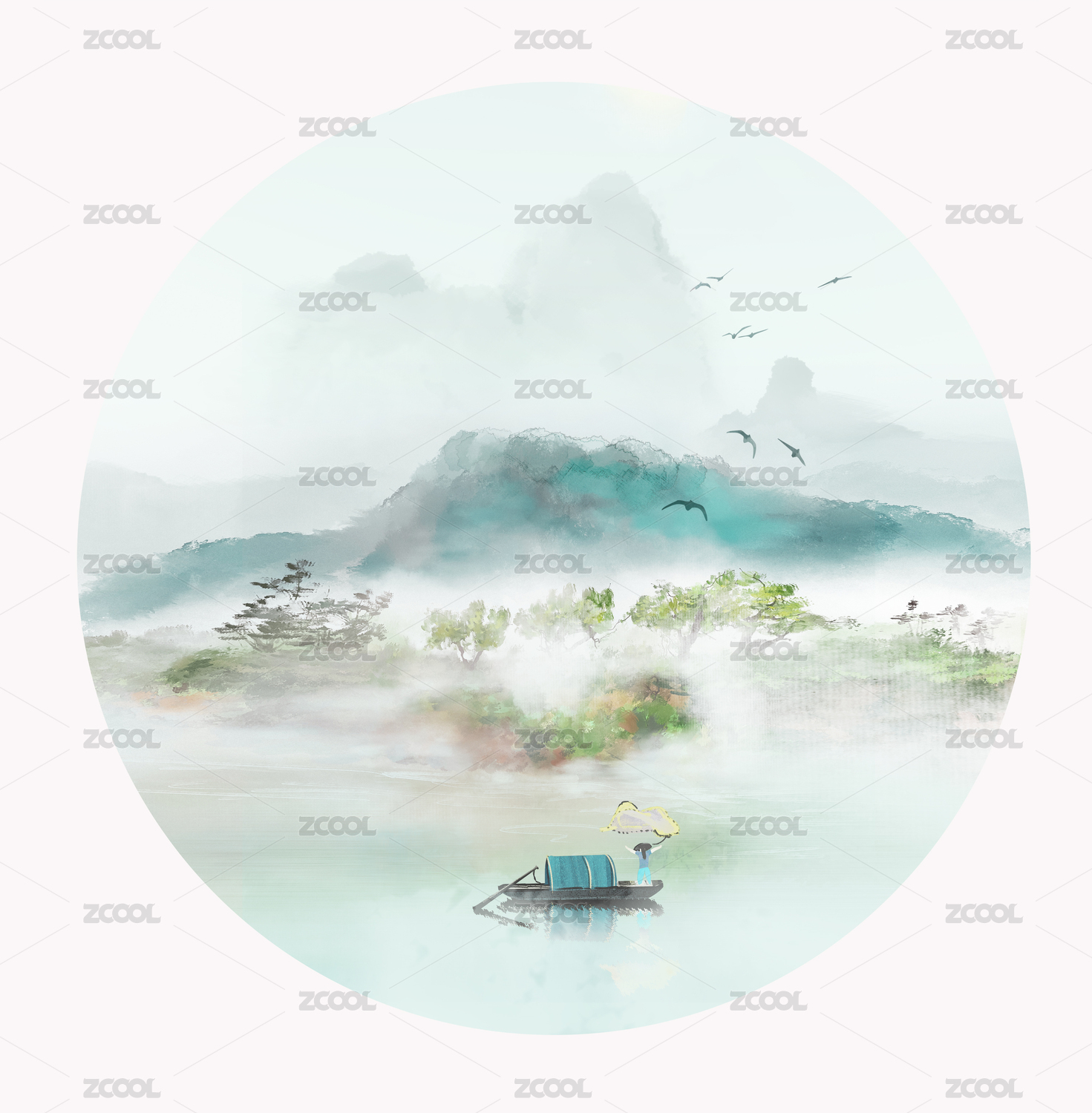 春天,24节气,装饰画,水墨,插画,手绘,水彩,插图,国画,柳树