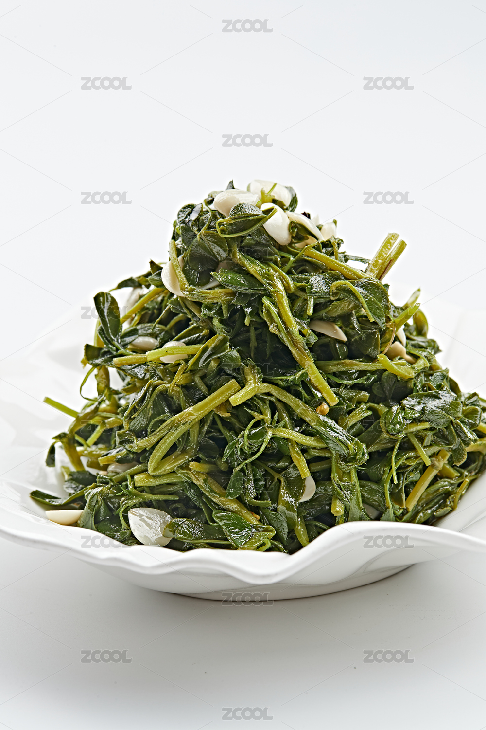 白色瓷盘装的杏仁炝拌野菜