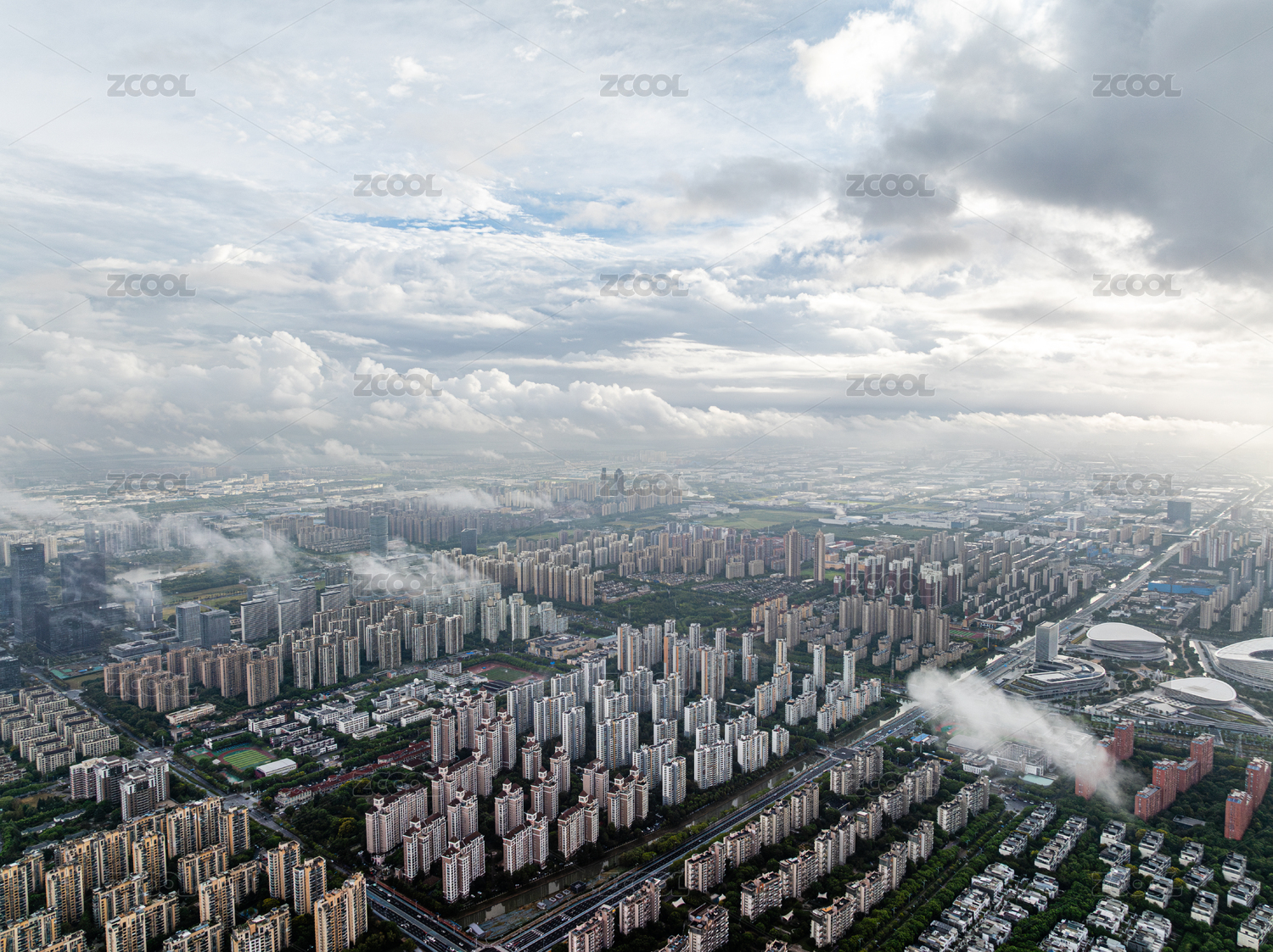 杭州滨江彩虹立交桥城市建筑风景航拍