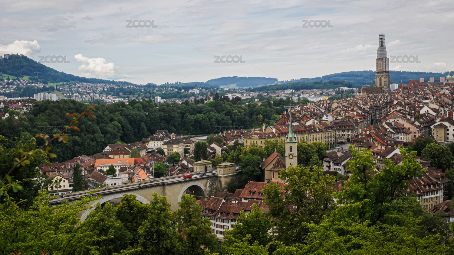 六月晨光下的伯尔尼老城与阿勒河