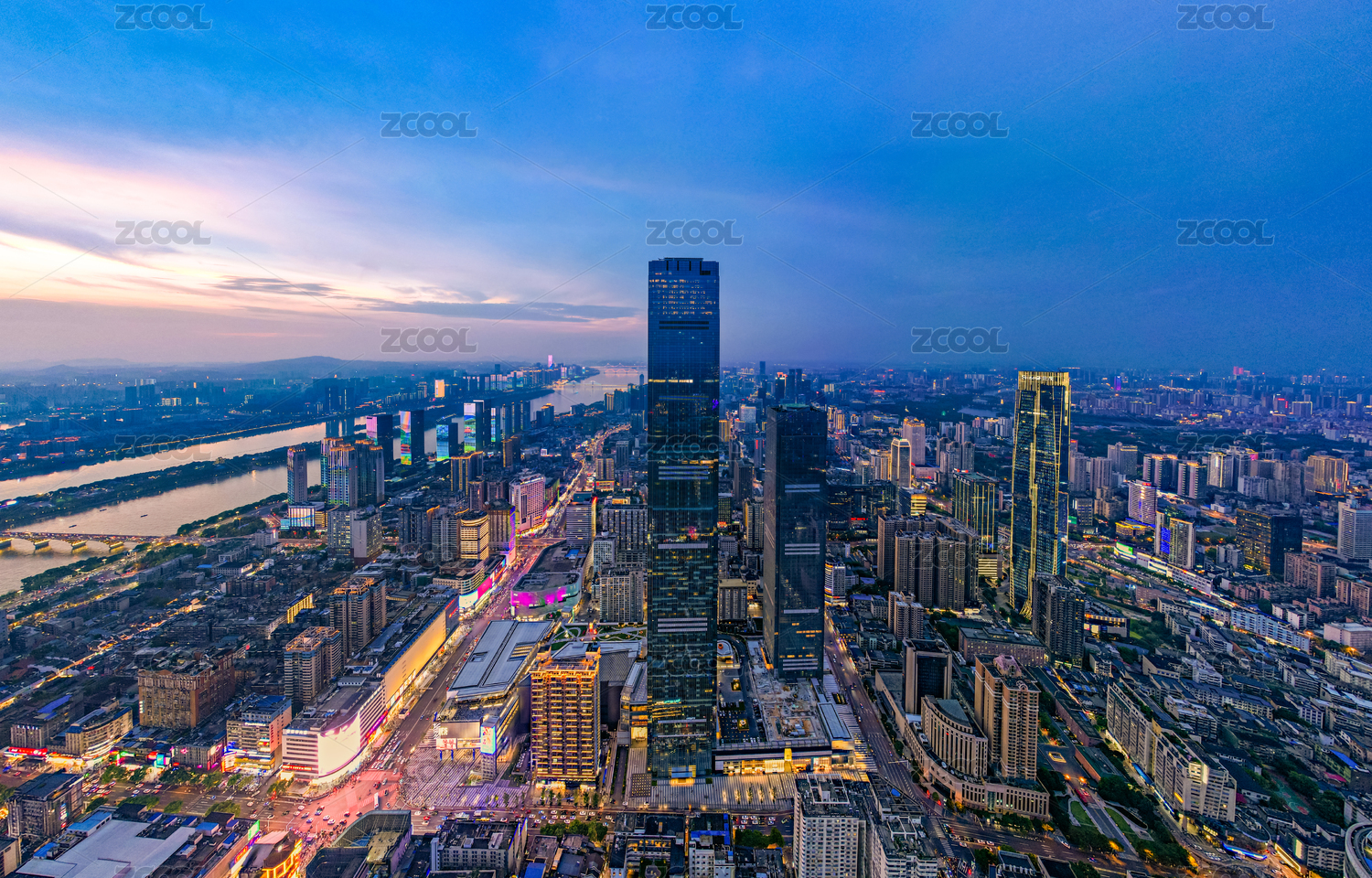 航拍湖南省长沙ifs国金中心城市日落夕阳