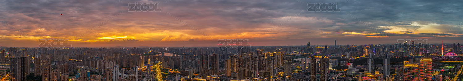 中国广州城市建筑群与夕阳晚霞火烧云航拍
