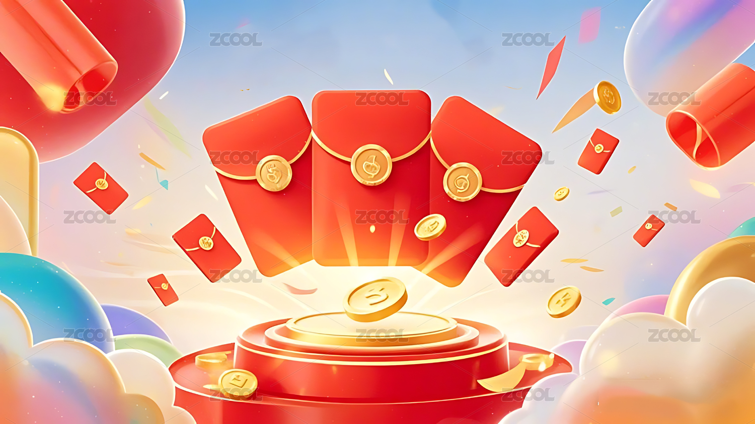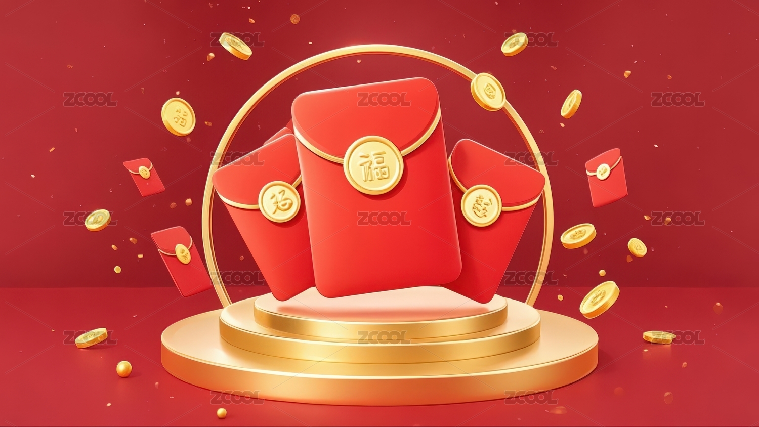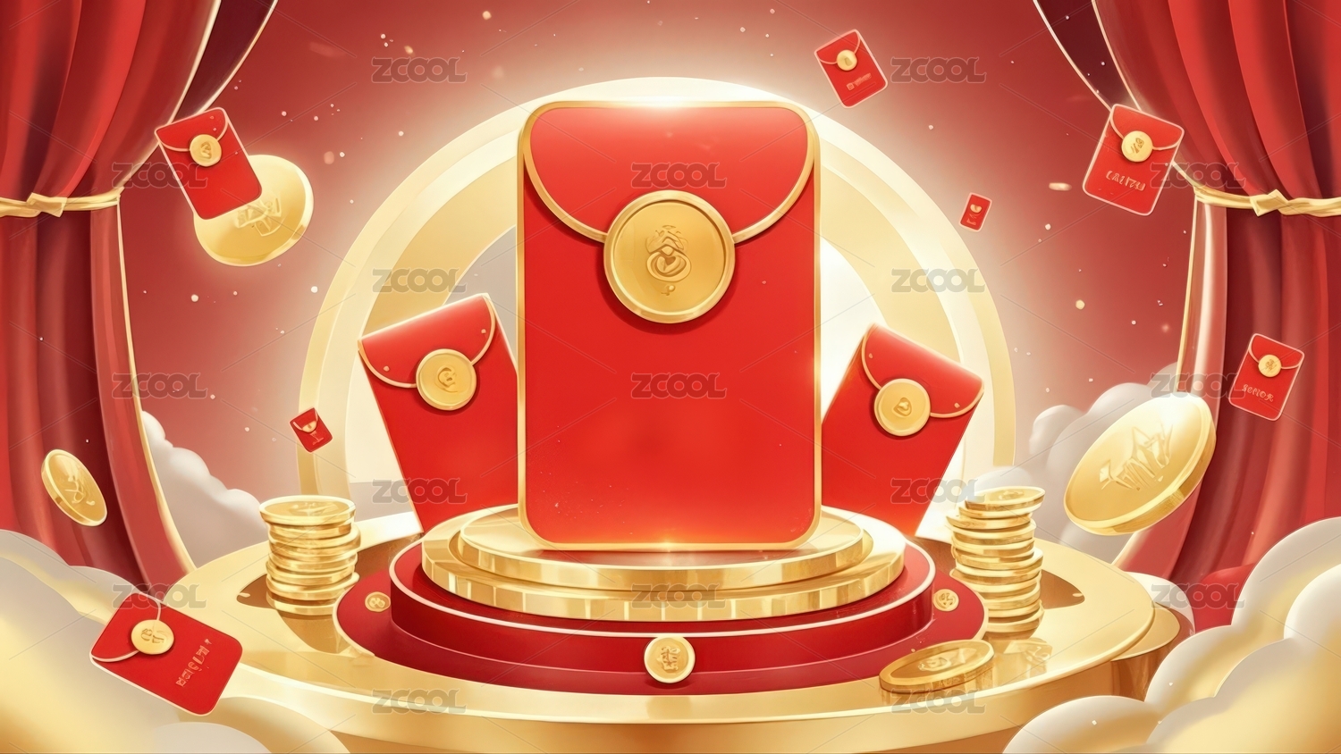 红包金台伴金币喜庆场景