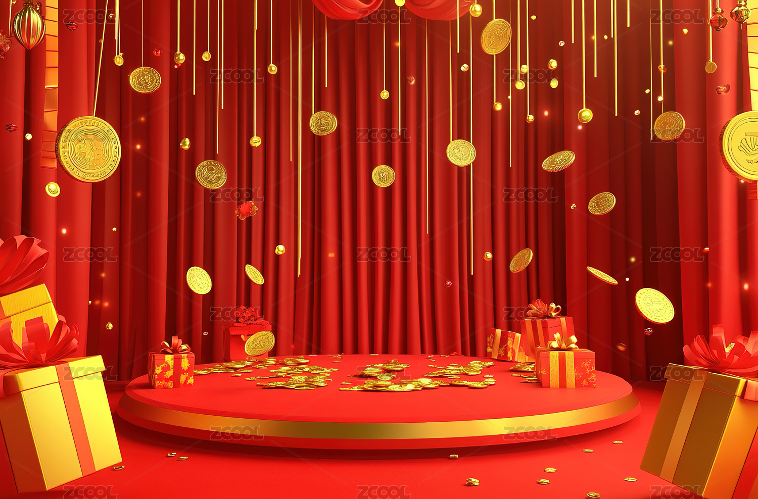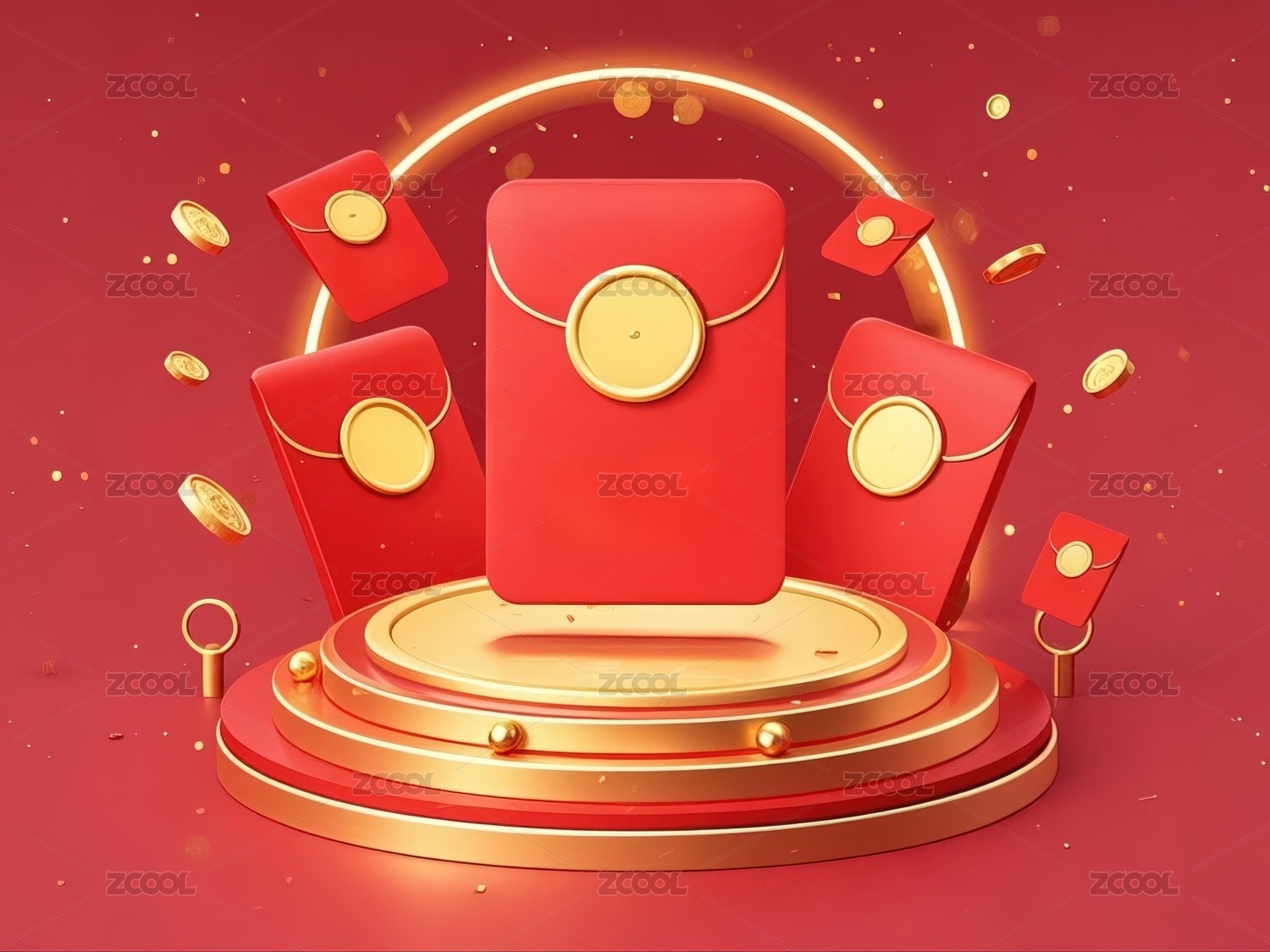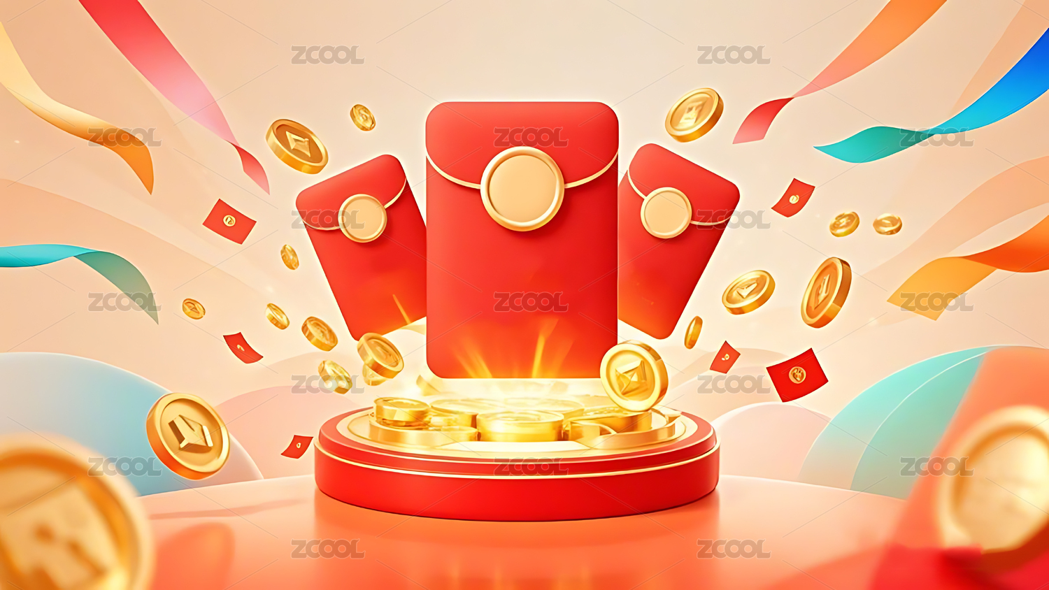 红包金台伴金币喜庆场景