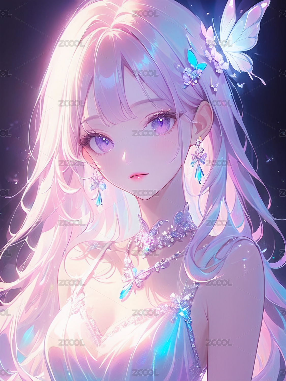 唯美,粉色,艺术,紫色,眼睛,绘画,肖像,动漫,少女,头发