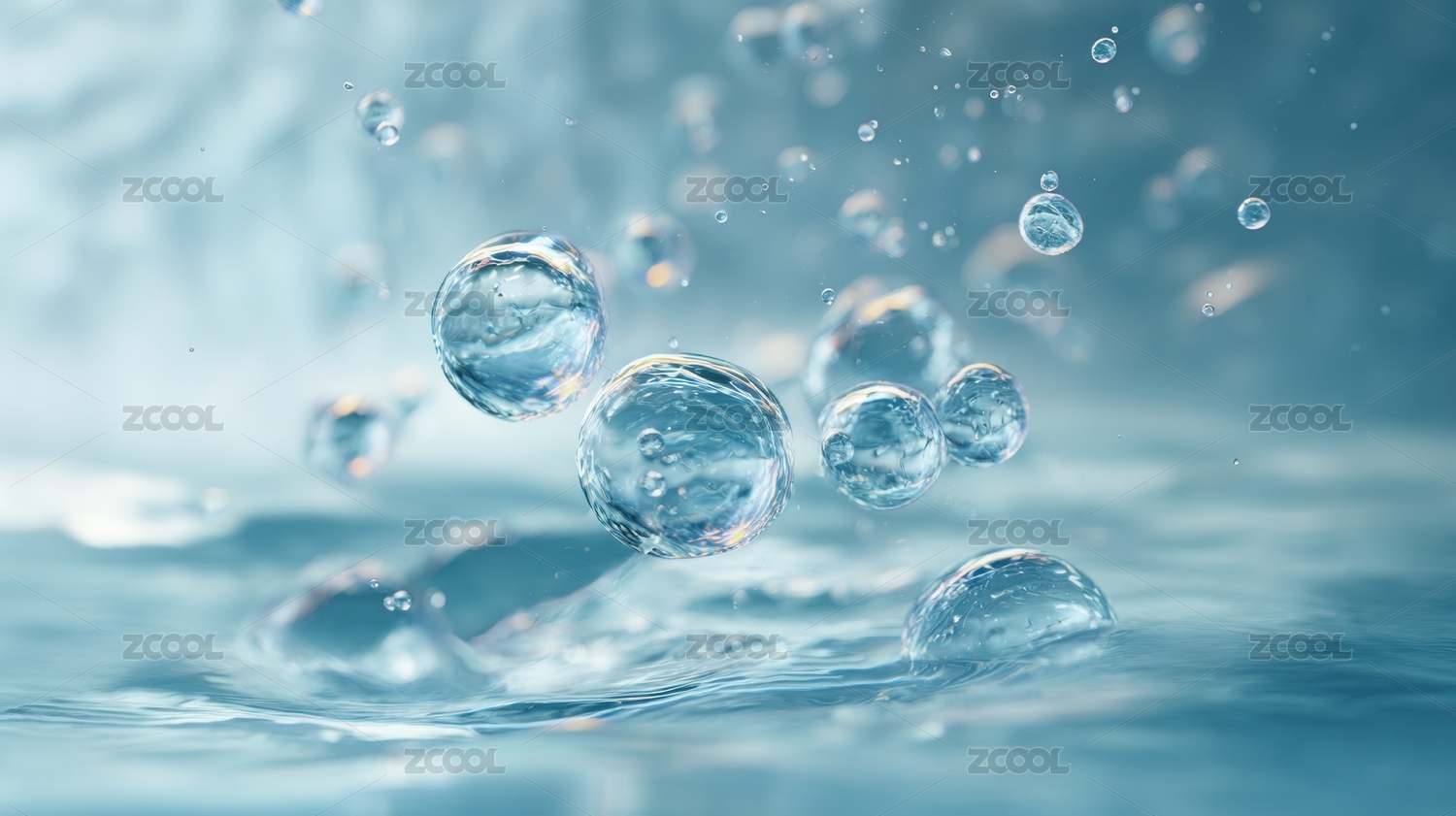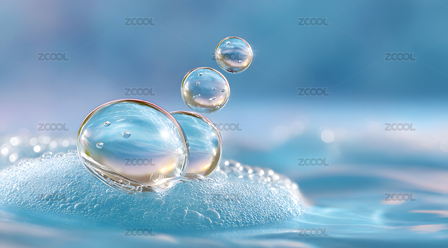 淡蓝色透明的水珠气泡