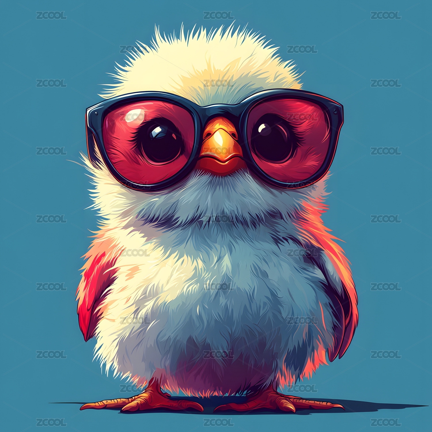 卡通复古彩色鹦鹉带着潮流墨镜的头像插画