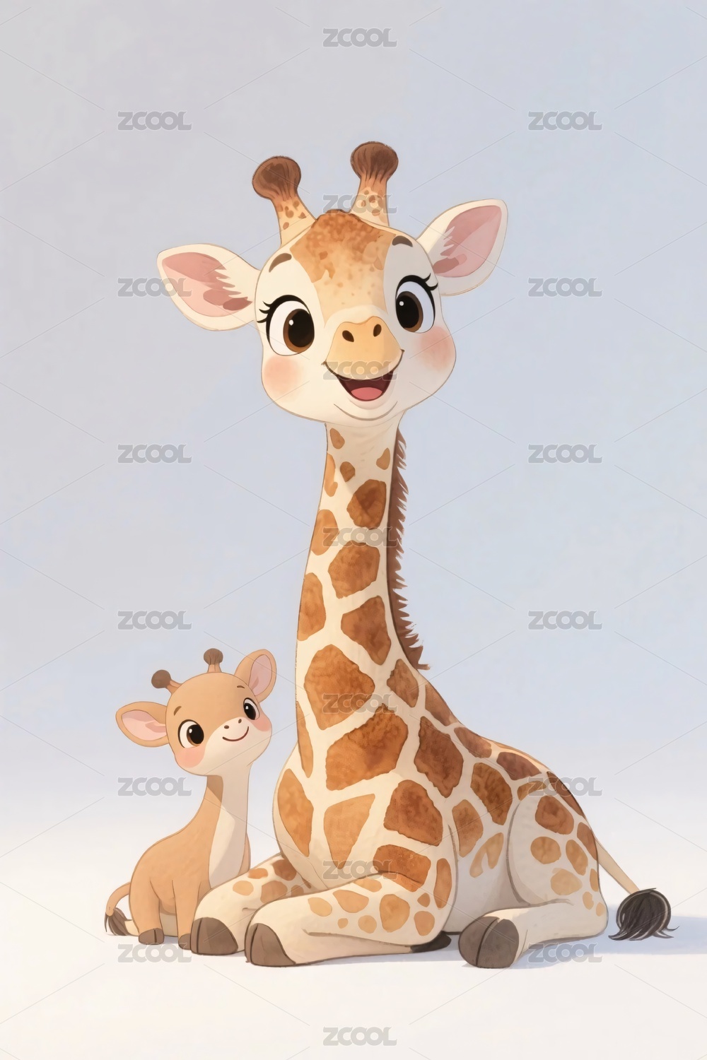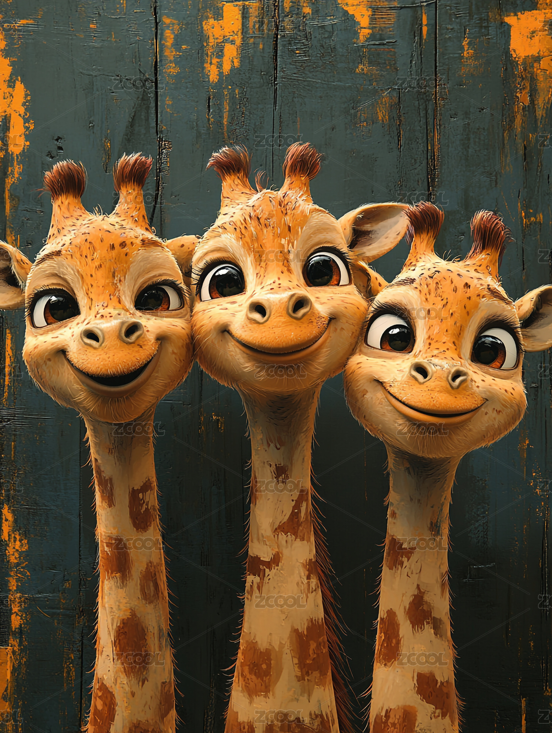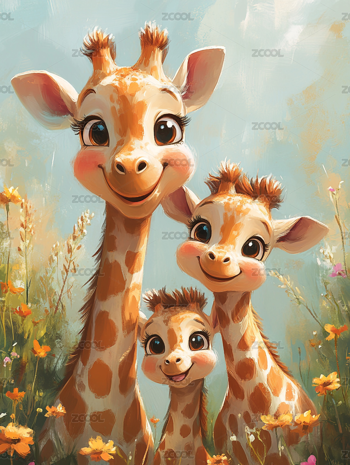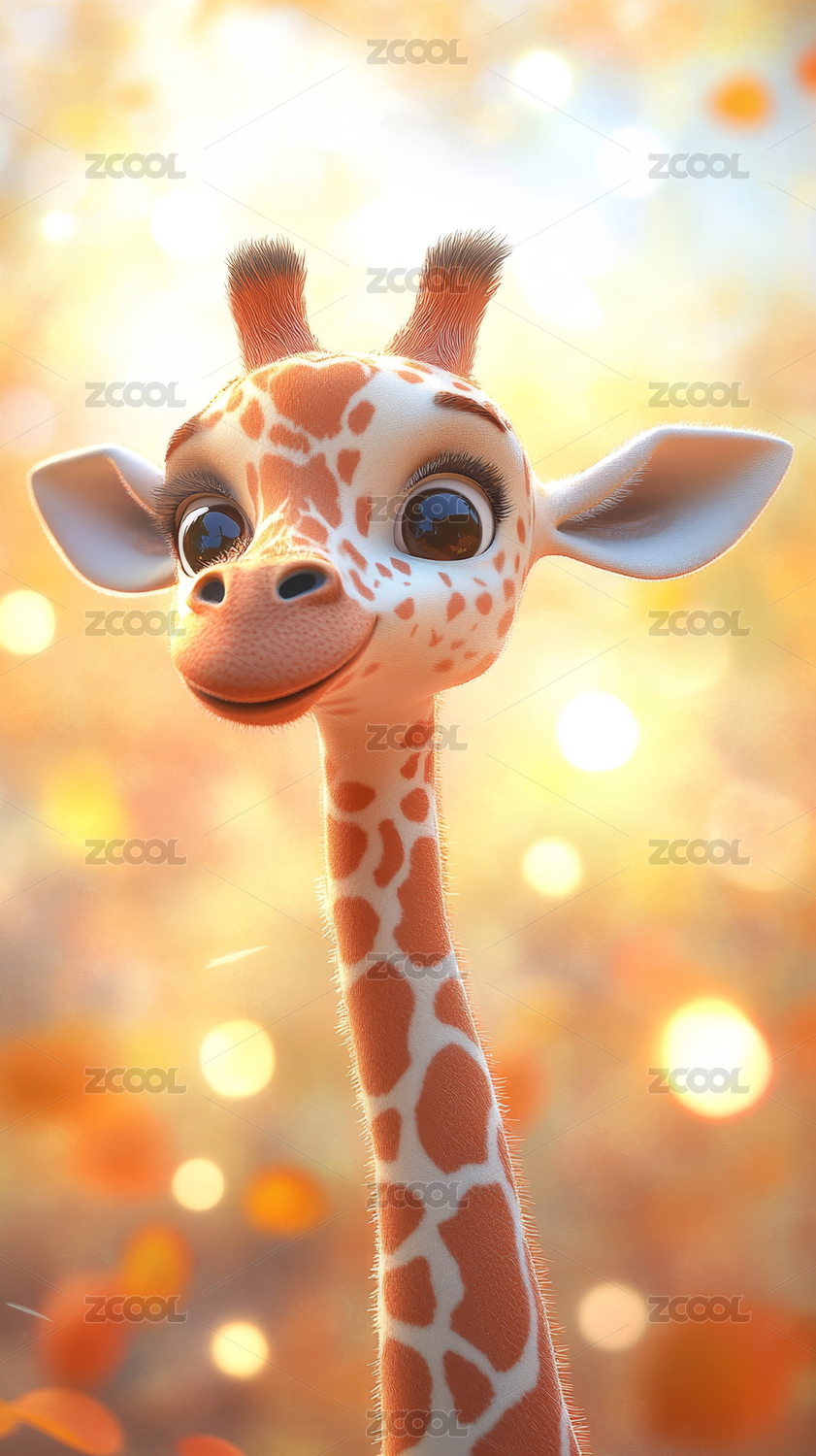 长颈鹿可爱唯美野生动物3D卡通插画壁纸