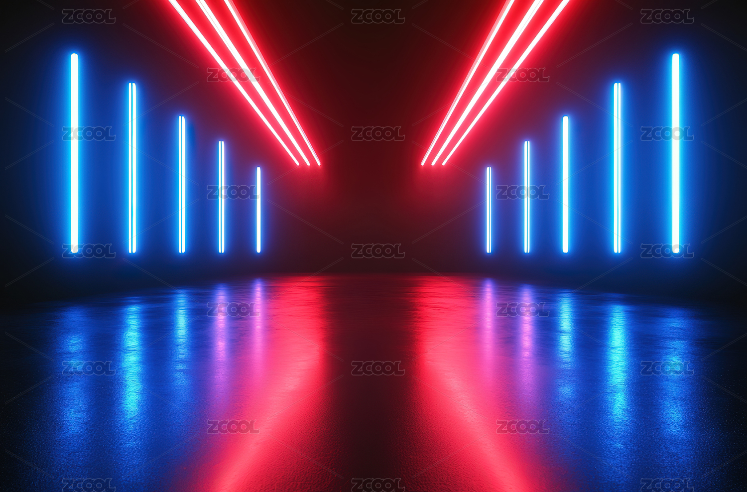 霓虹光束交织的未来感空间