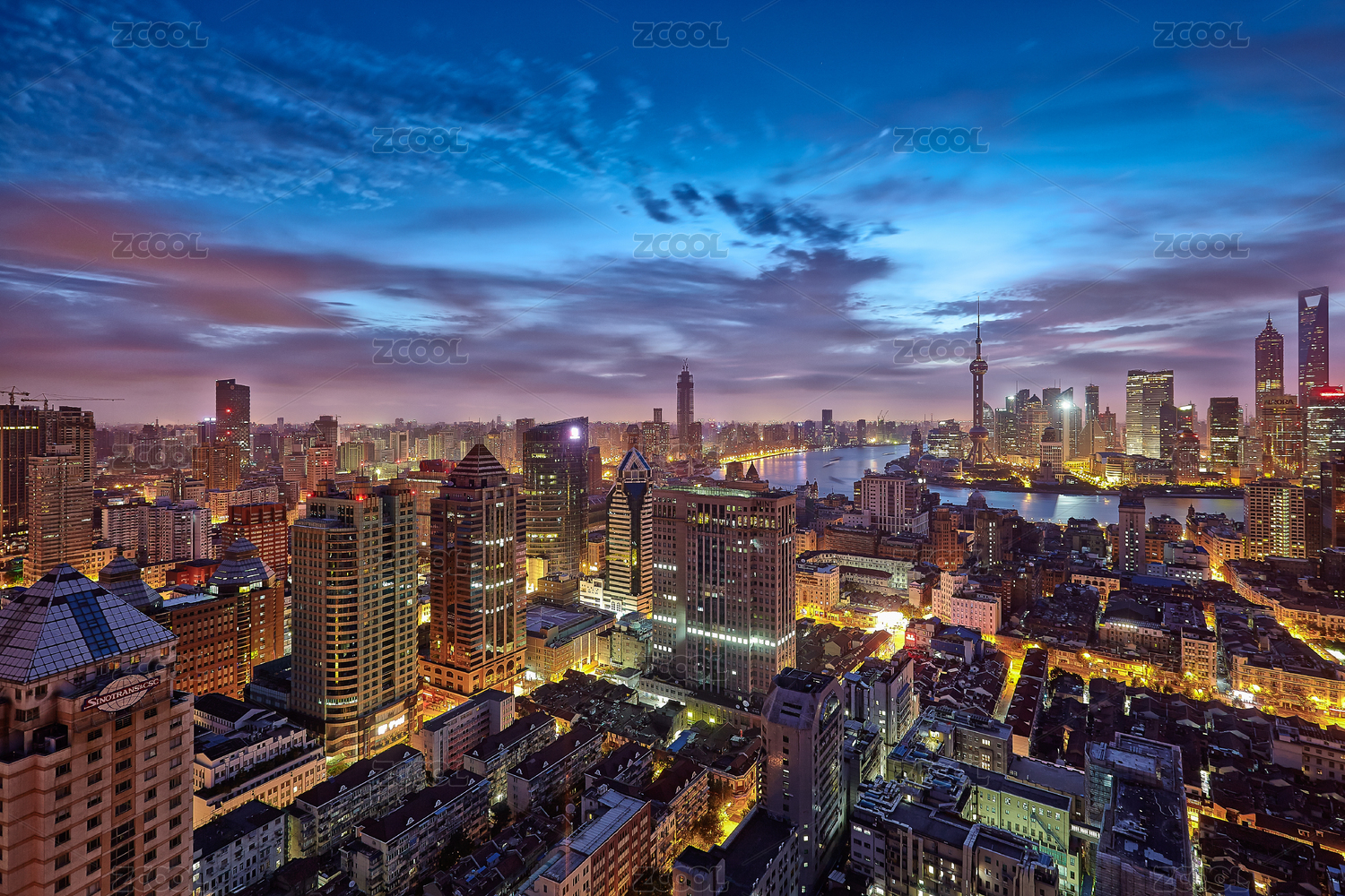 中国上海外滩黄浦江陆家嘴金融城建筑城市风光