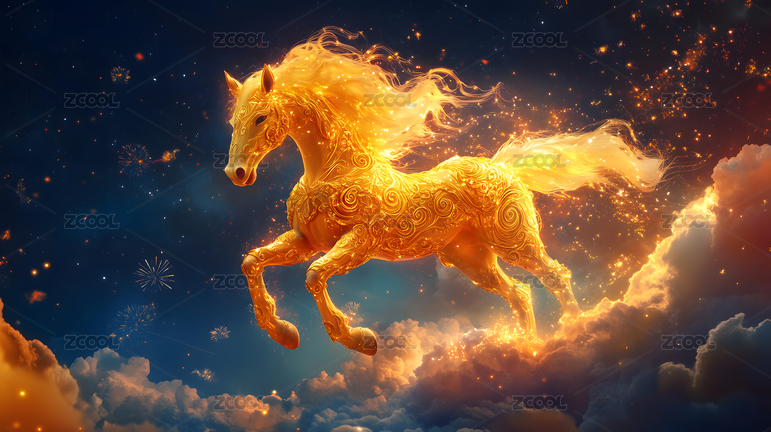 金色,骏马,夜空,自由,奔跑,星光,神秘,美丽,火焰,粒子