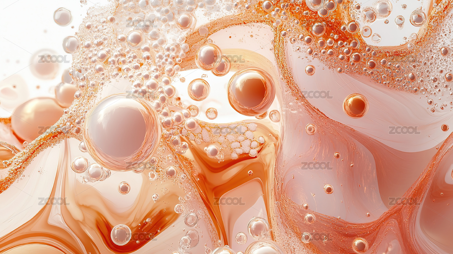 粉色柔和背景下的粉色气泡精华液体特写镜头