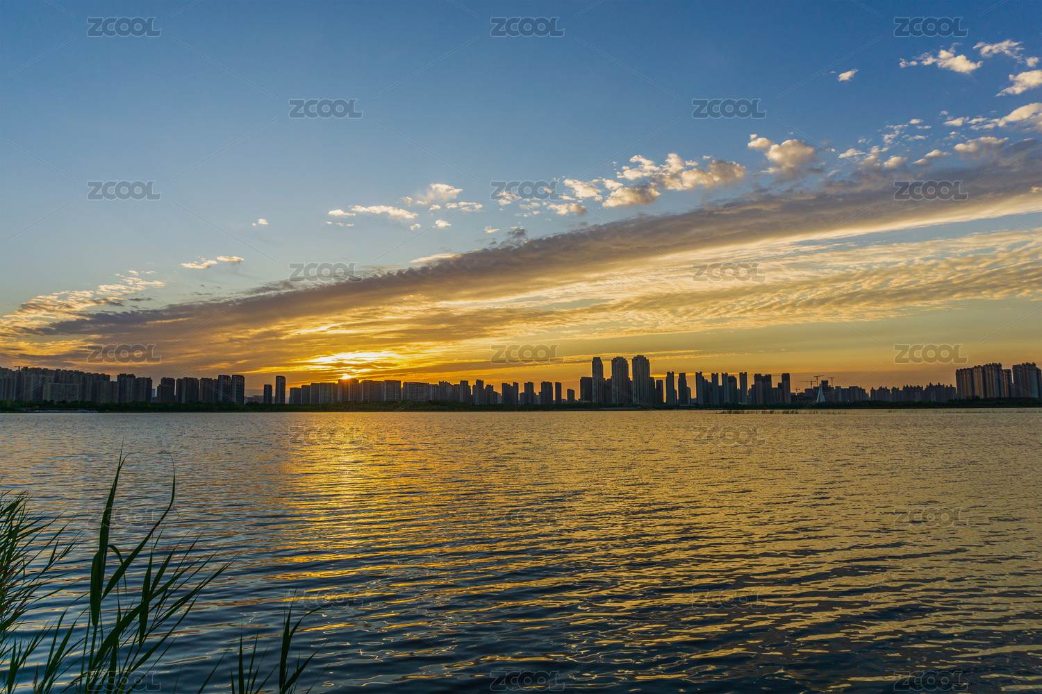晋阳湖,日出,颜色,湖泊,水域,中国,山西,太原,美丽的,渔船