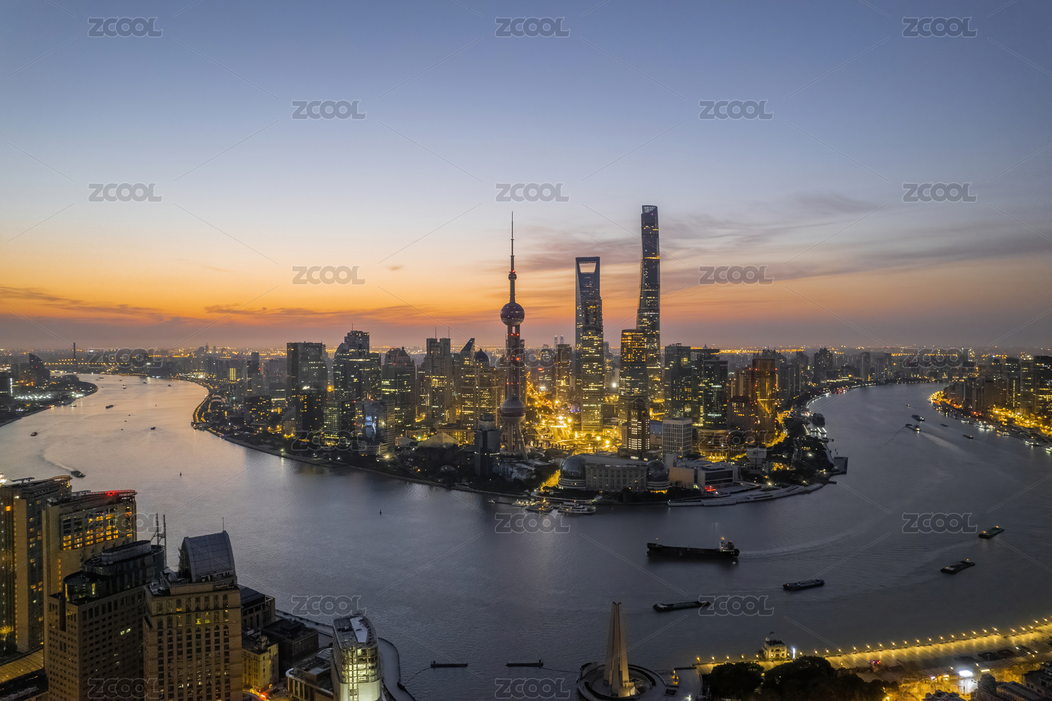 上海外滩陆家嘴城市建筑群城市天际线航拍