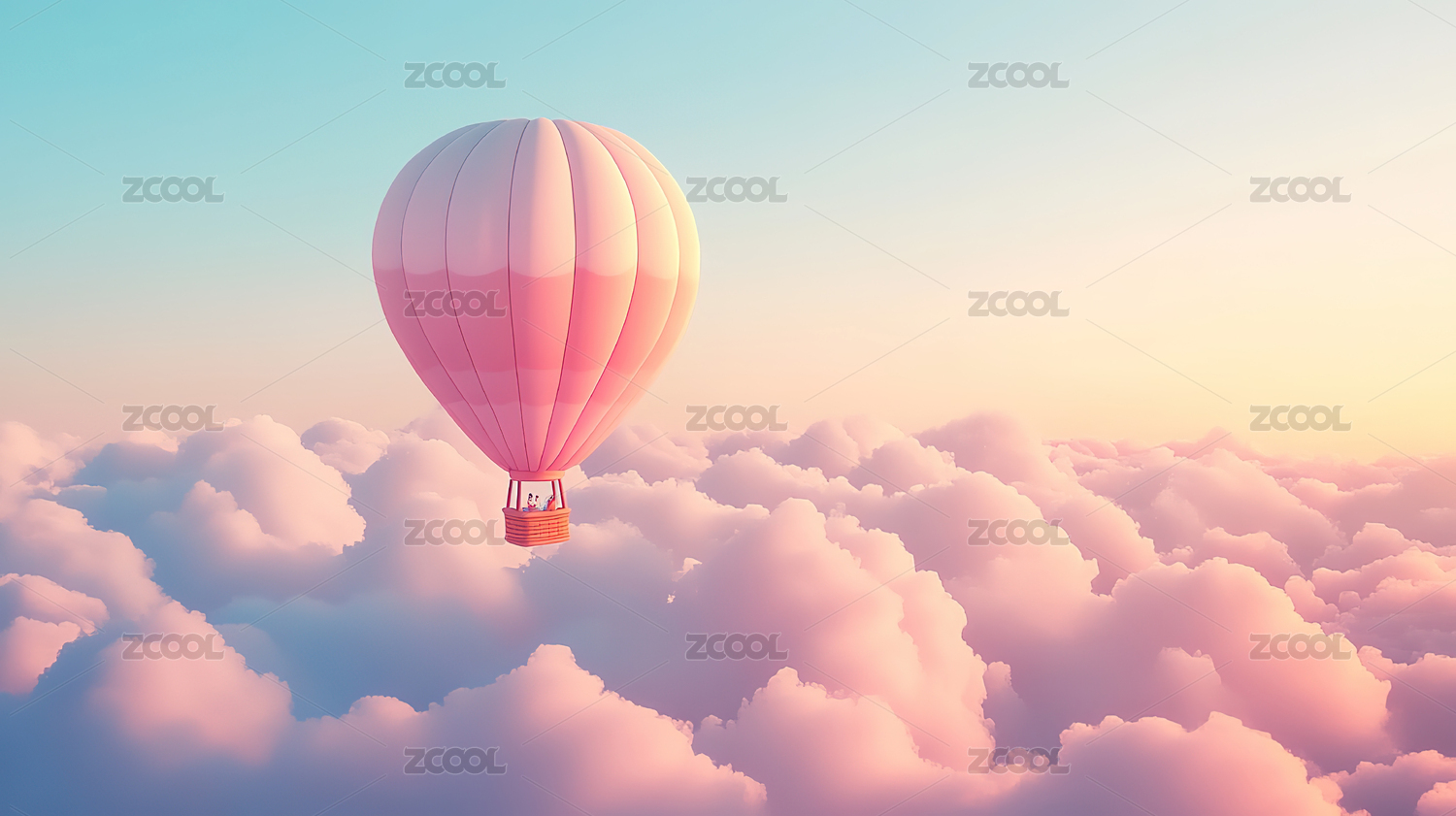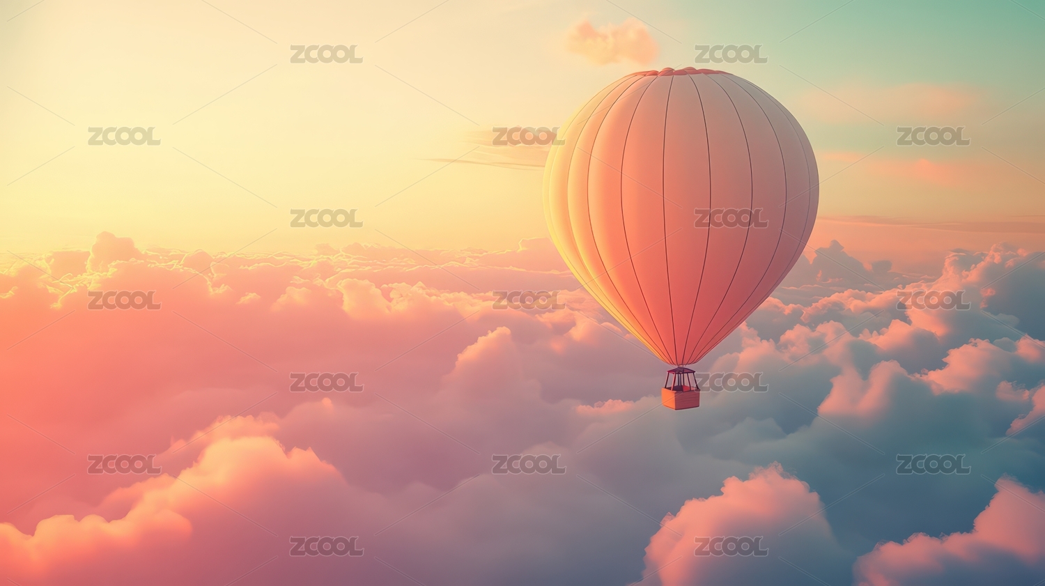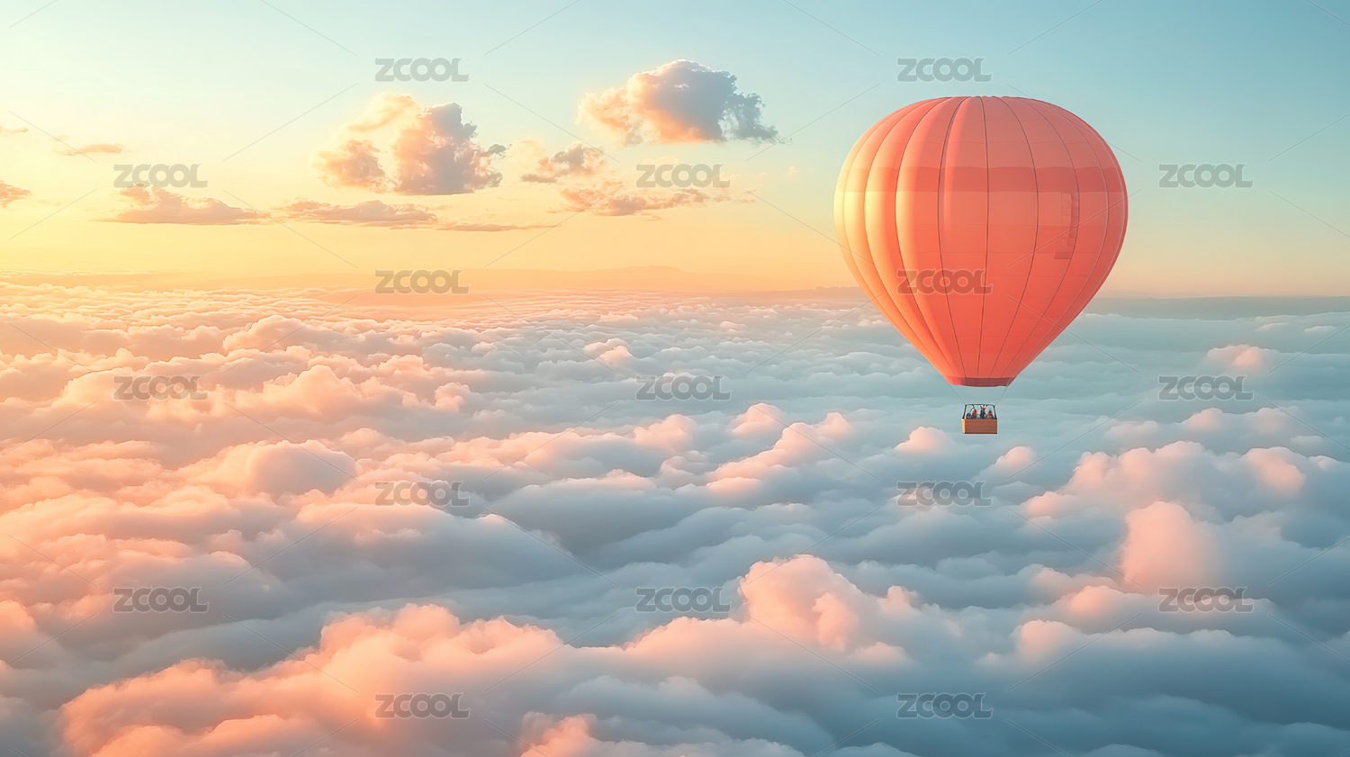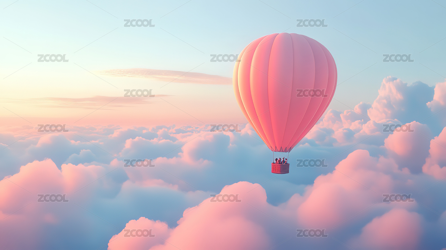 粉色云海中的热气球