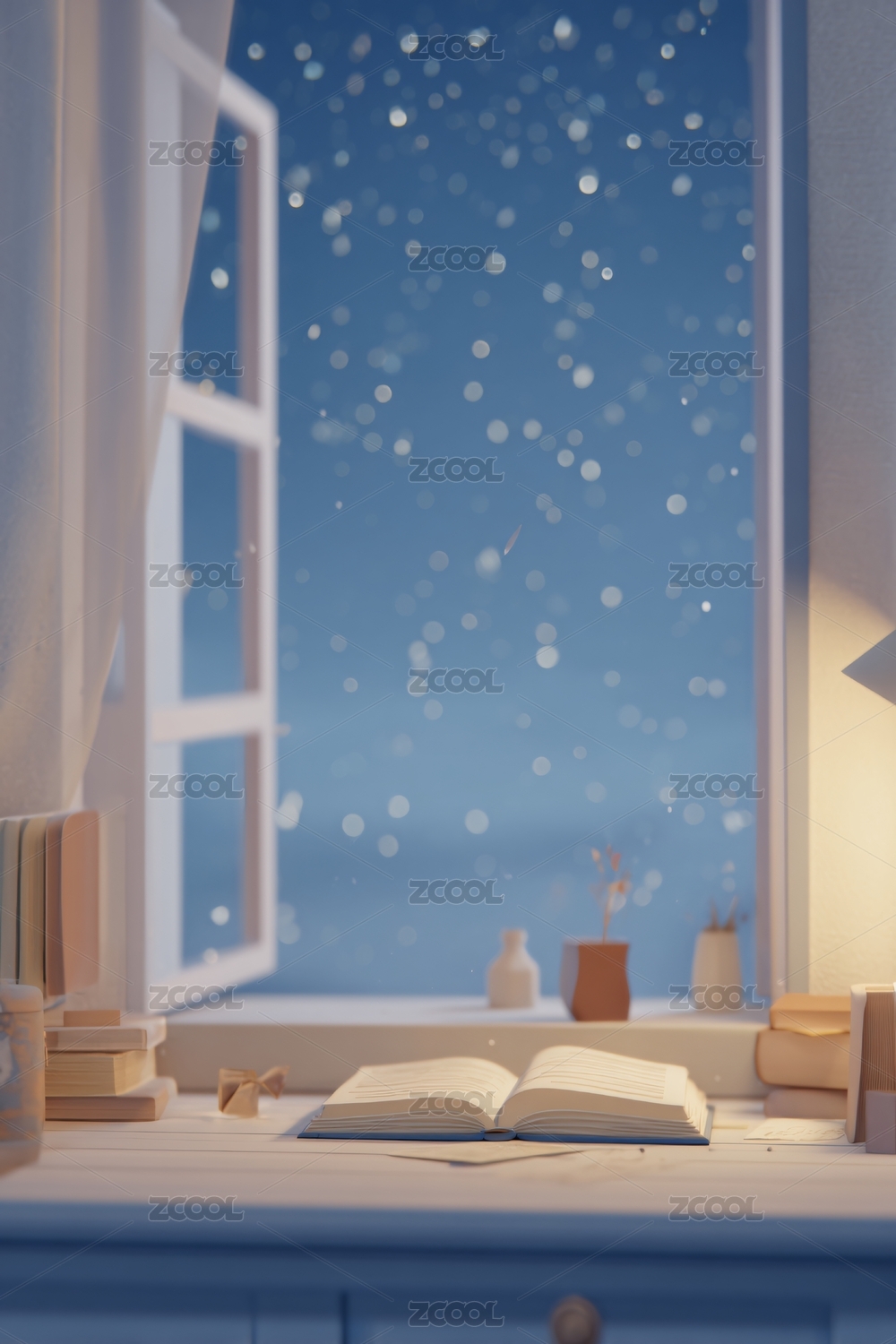 夜晚窗边温馨看书角落